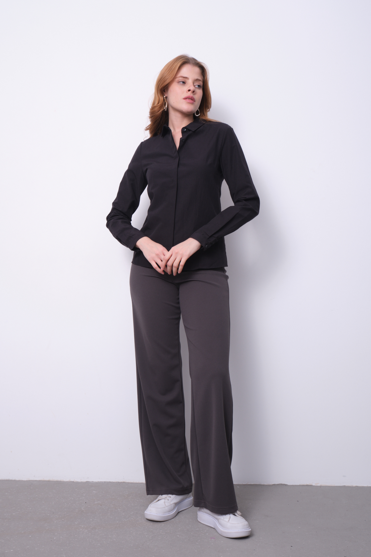 Kadın Basic Gizli Düğme Özellikli Gömlek