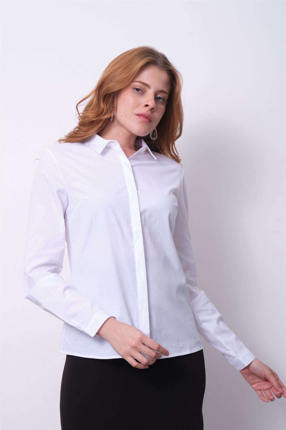 Kadın Basic Gizli Düğme Özellikli Gömlek