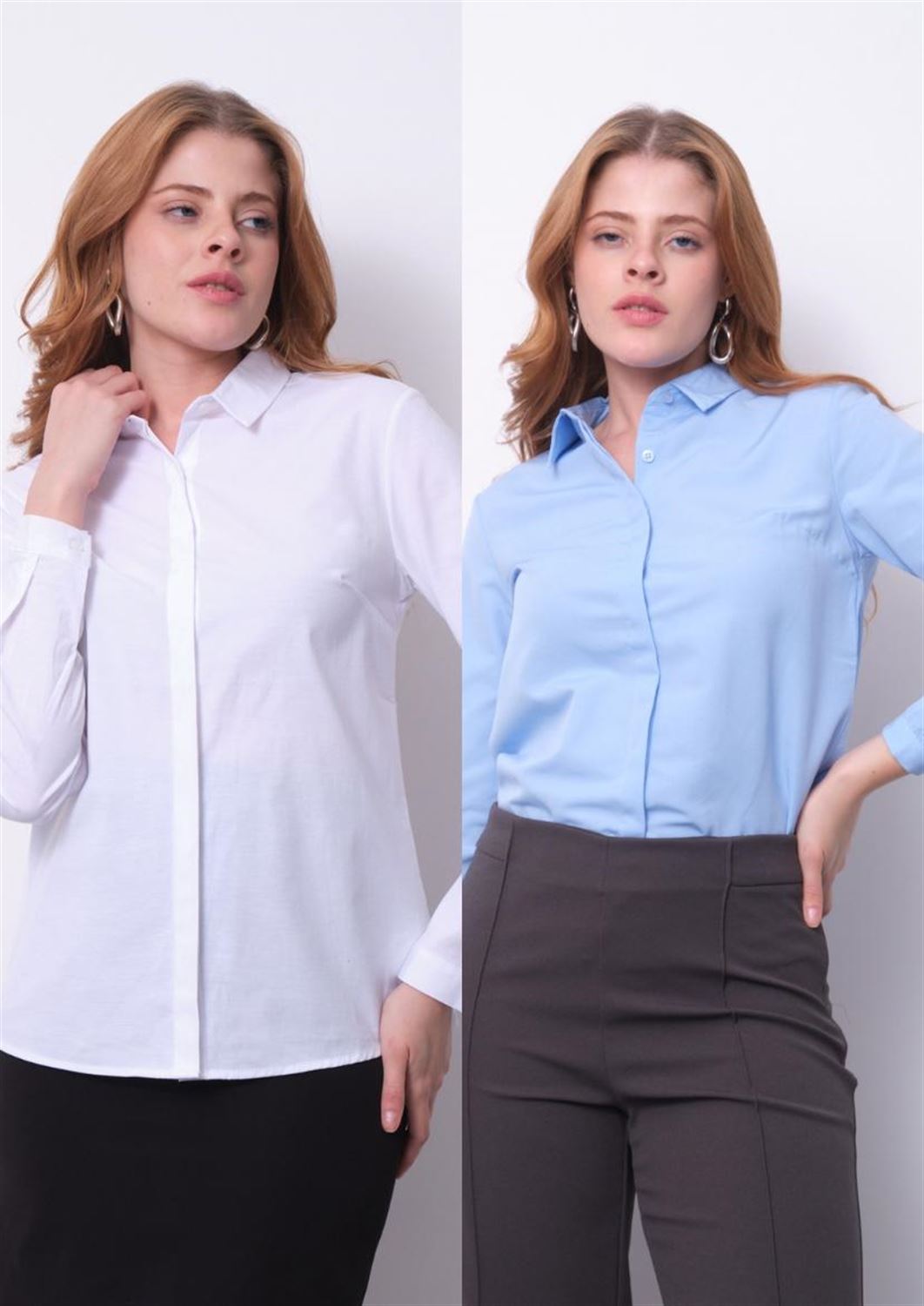 2'li Klasik Basic Kesim Gizli Düğmeli Personel Ofis Kadın Gömleği