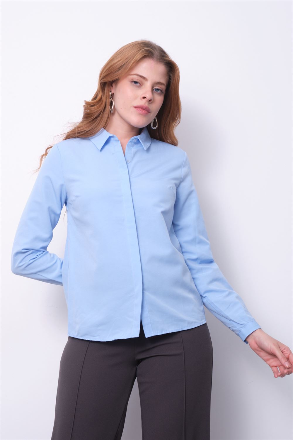 Kadın Basic Gizli Düğme Özellikli Gömlek