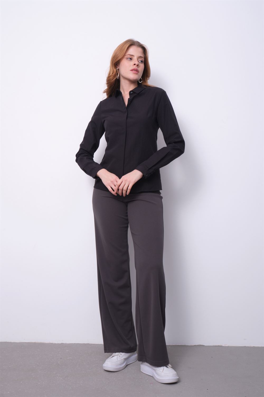 Kadın Basic Gizli Düğme Gömlek