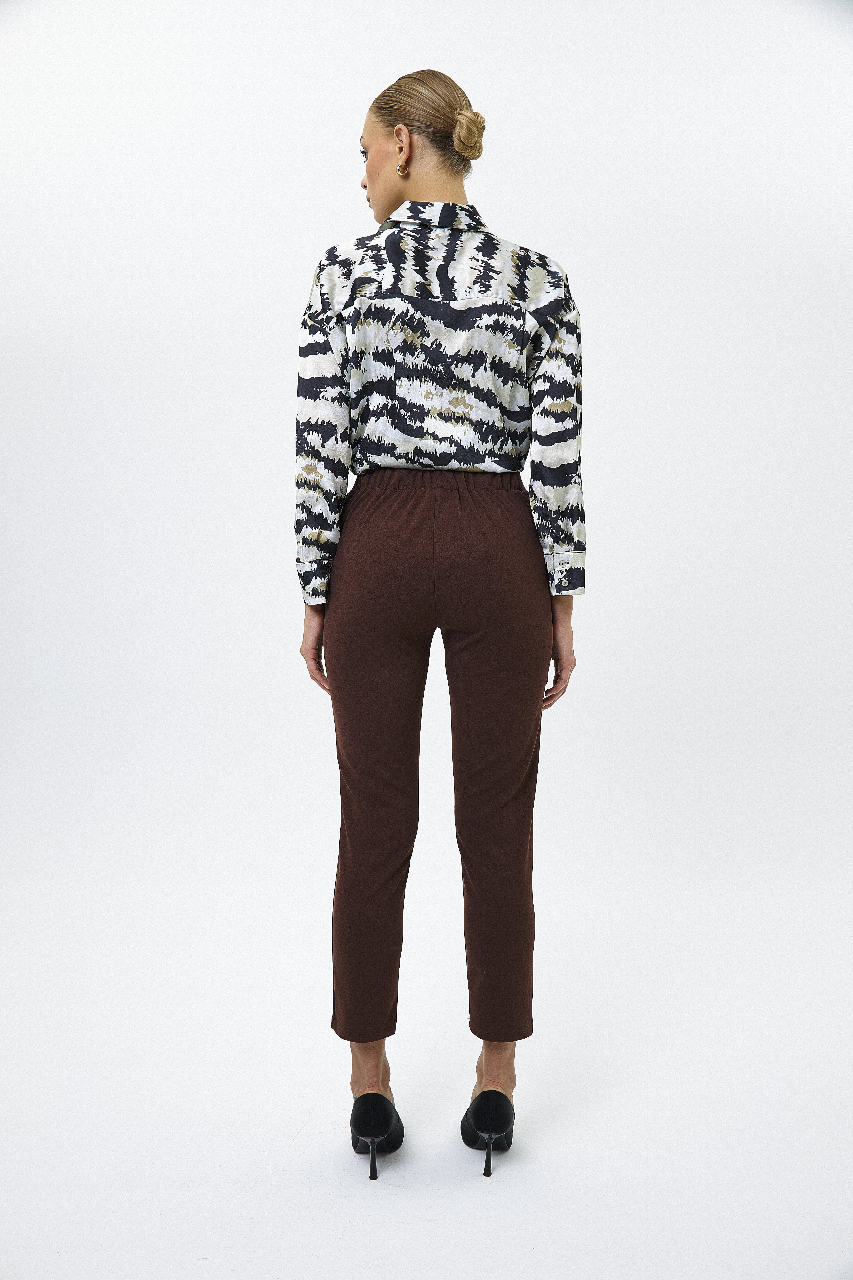 Beli Lastikli Likralı Esnek Kumaş Yüksek Bel Klasik Havuç Pantolon