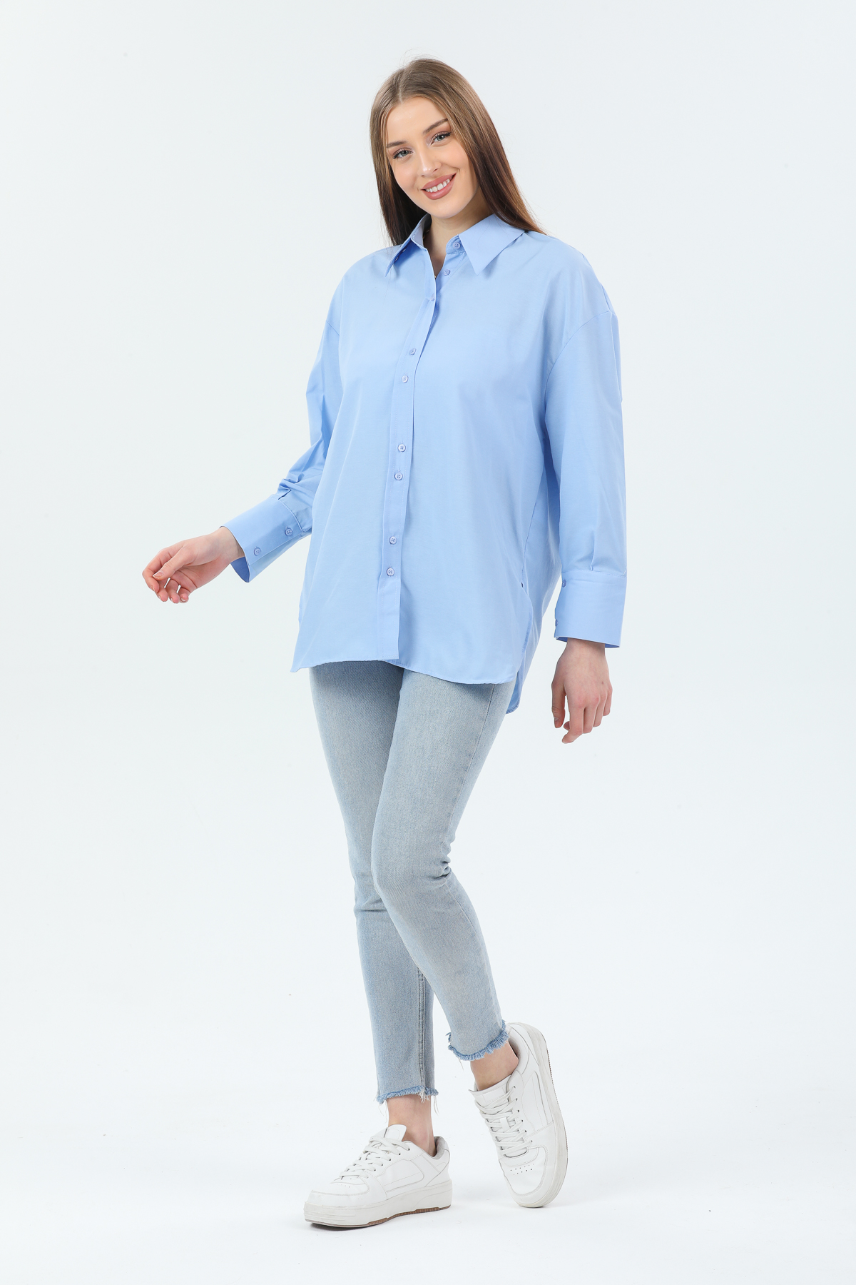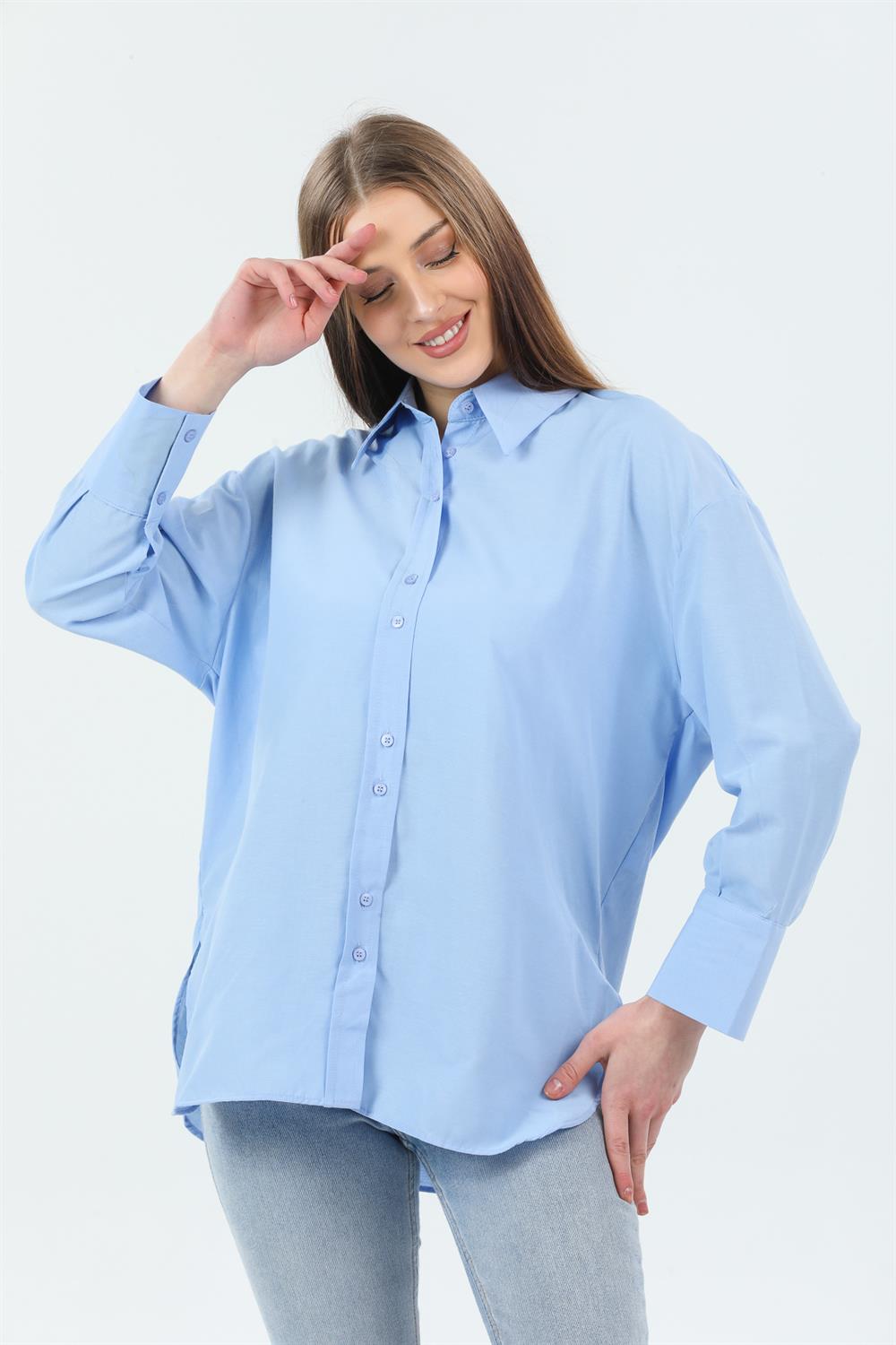 Kadın Basic Gizli Düğme Gömlek