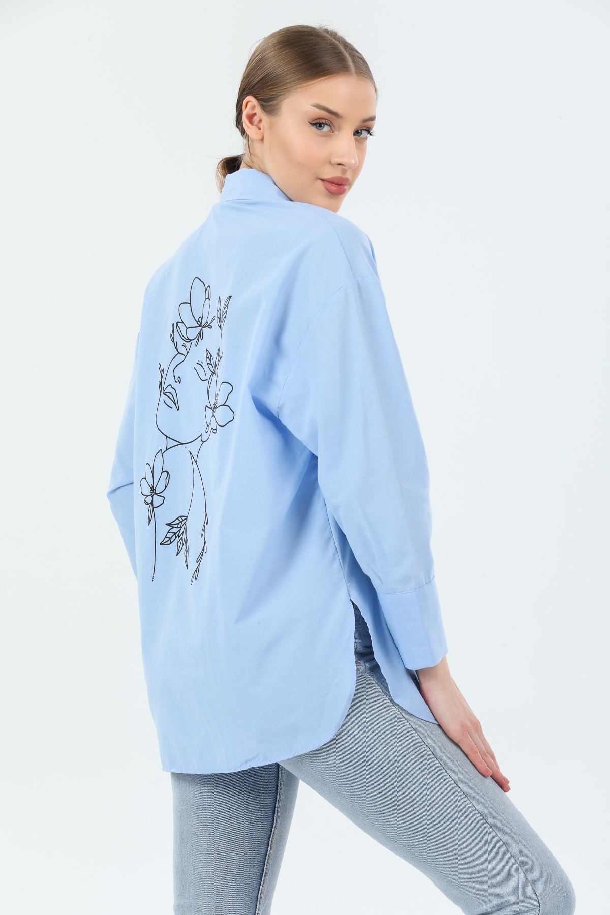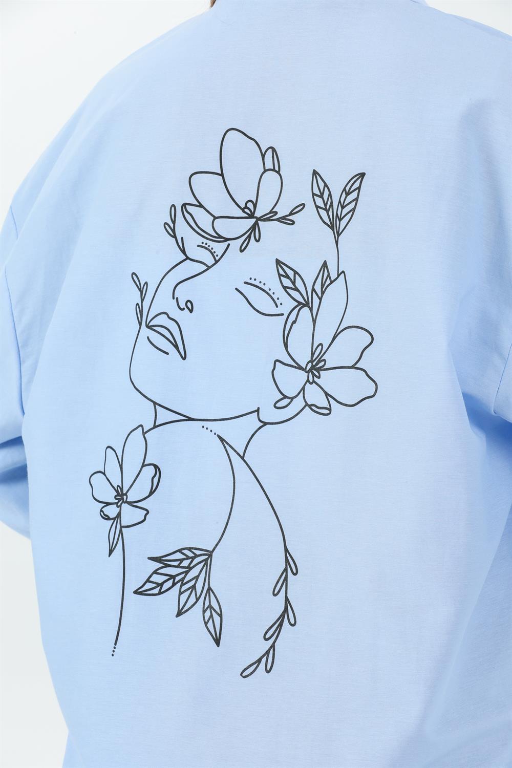 Arkası Yüz Baskılı Oversize Gömlek