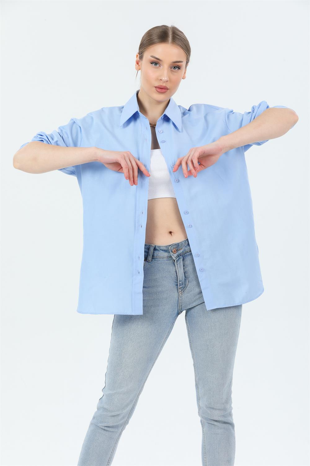 Kadın Basic Gizli Düğme Özellikli Gömlek