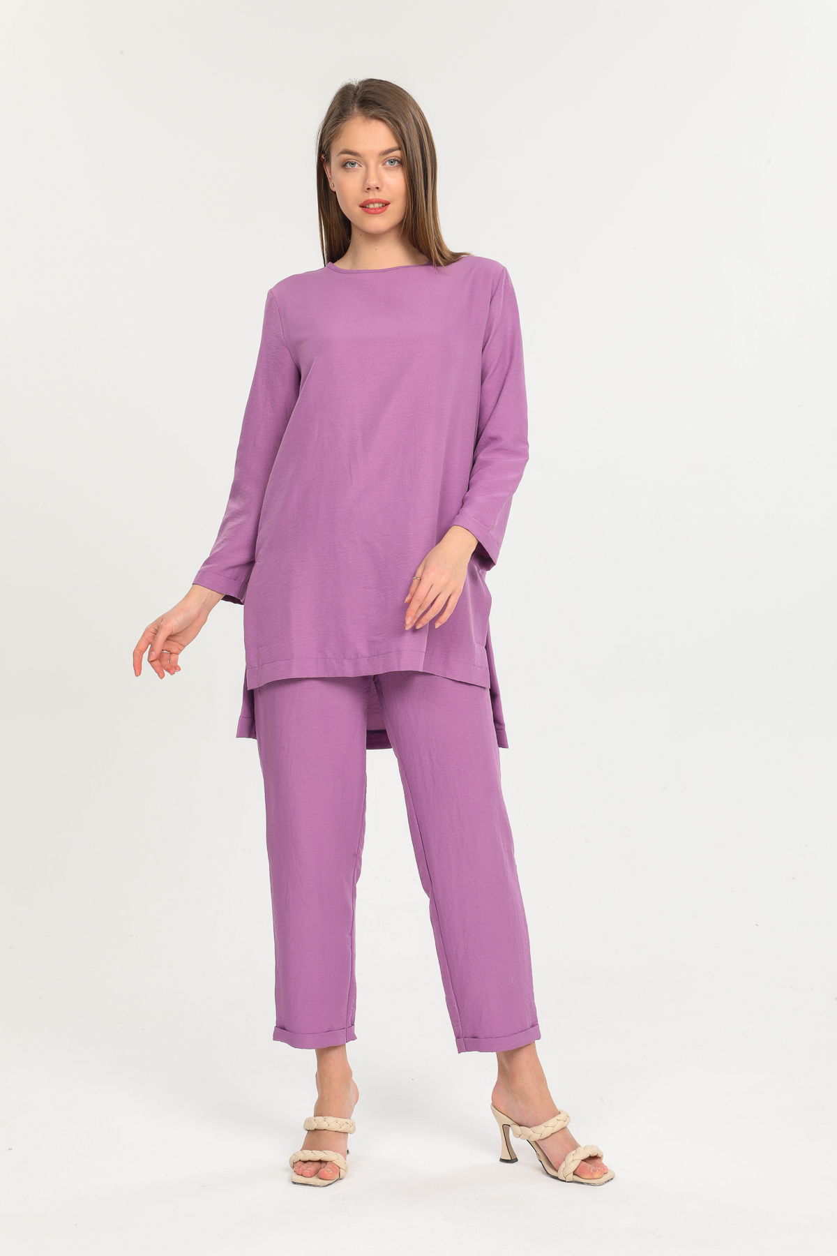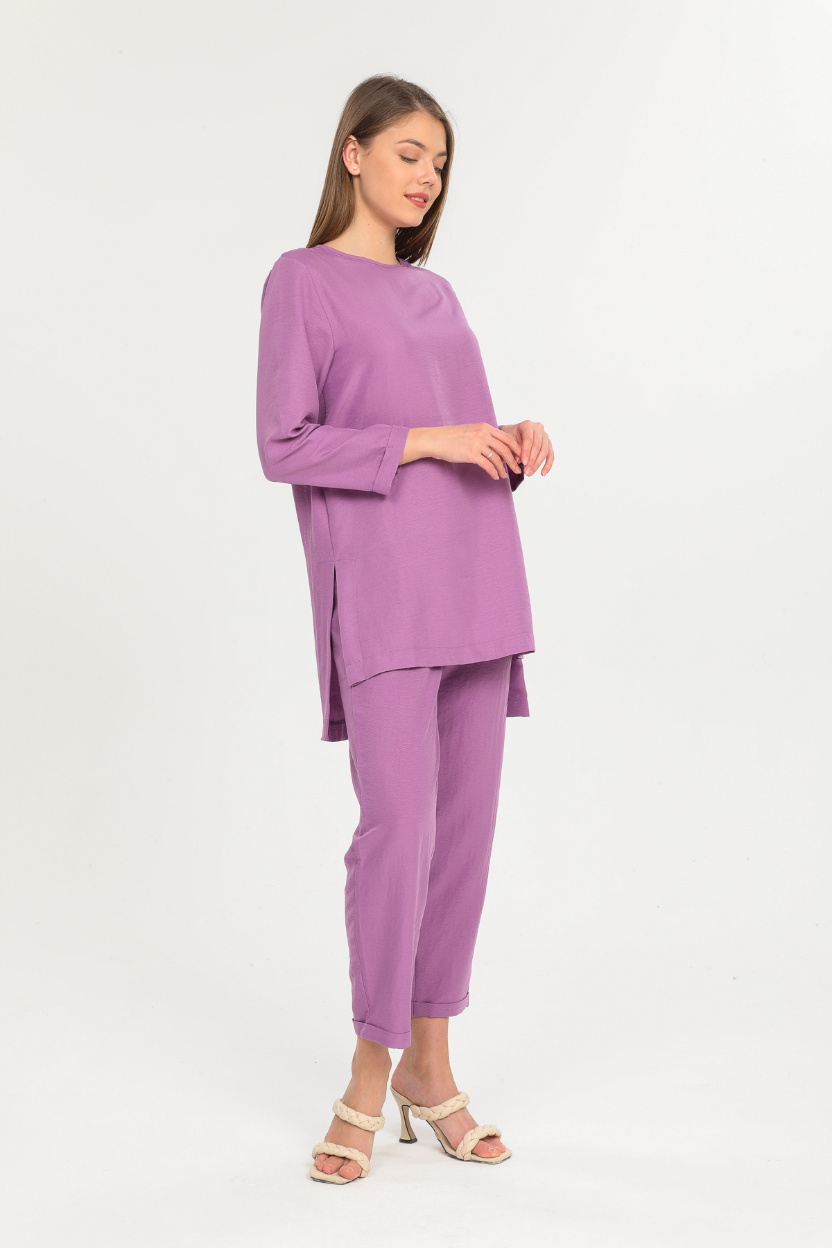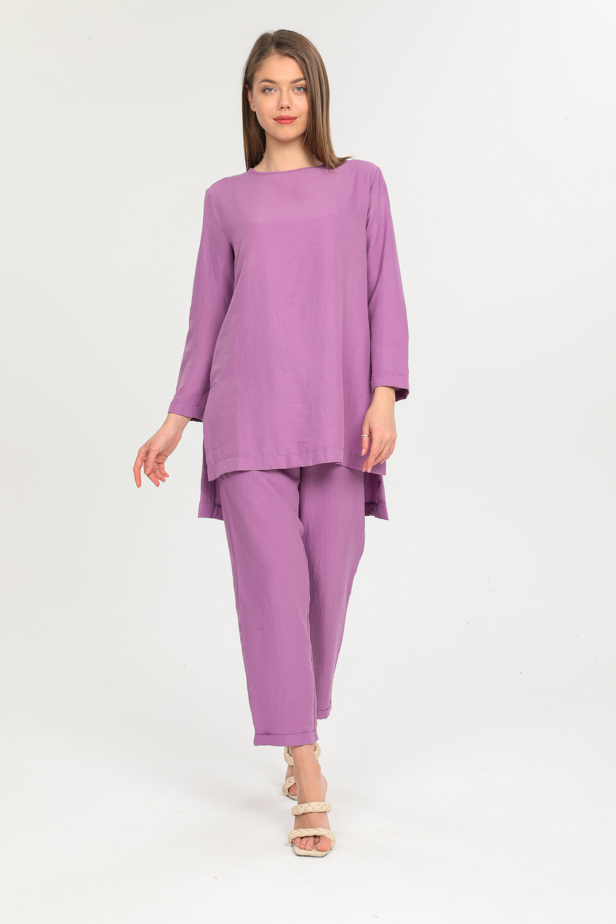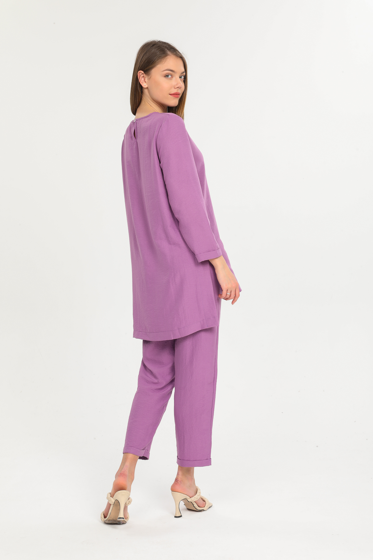 Bağlama Detaylı Rahat Kalıp Gold Düğmeli Süet Şık Takım