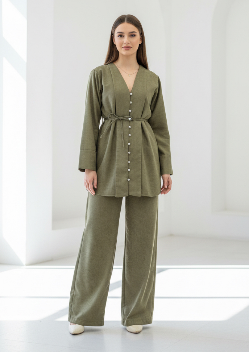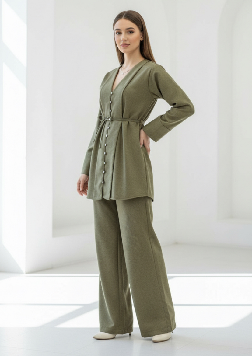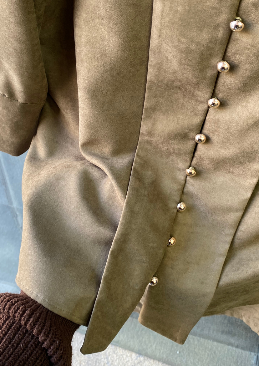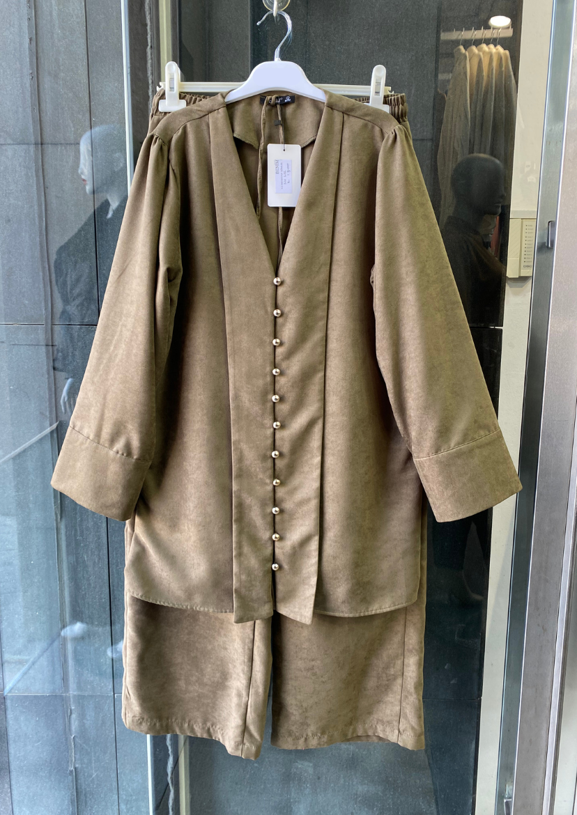 Bağlama Detaylı Rahat Kalıp Gold Düğmeli Süet Şık Takım