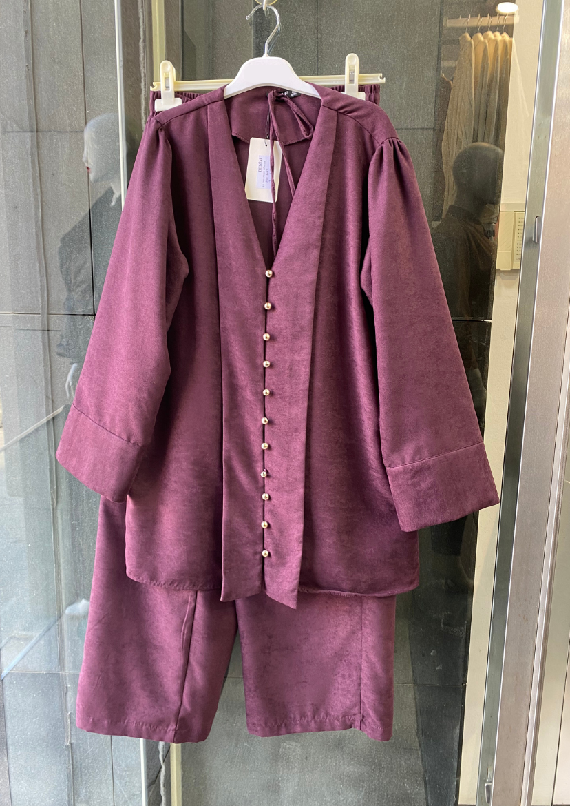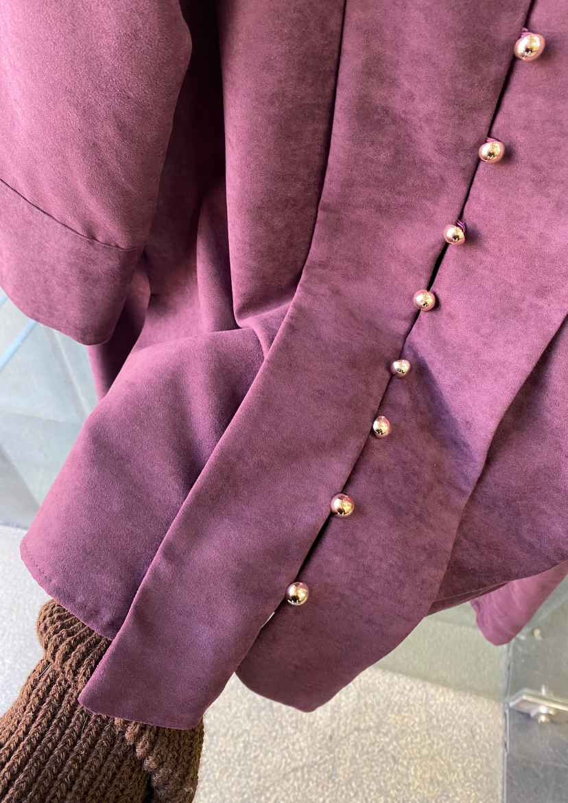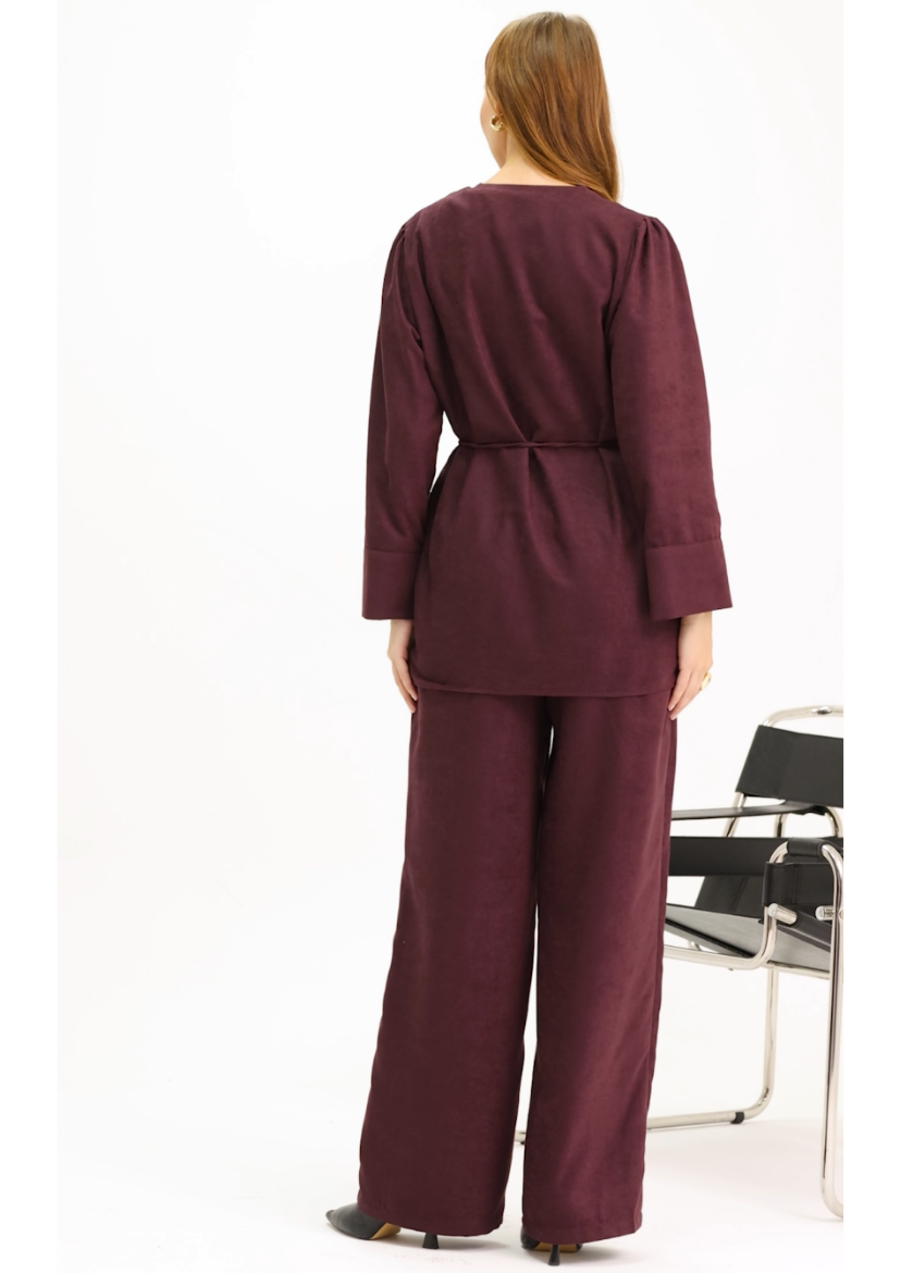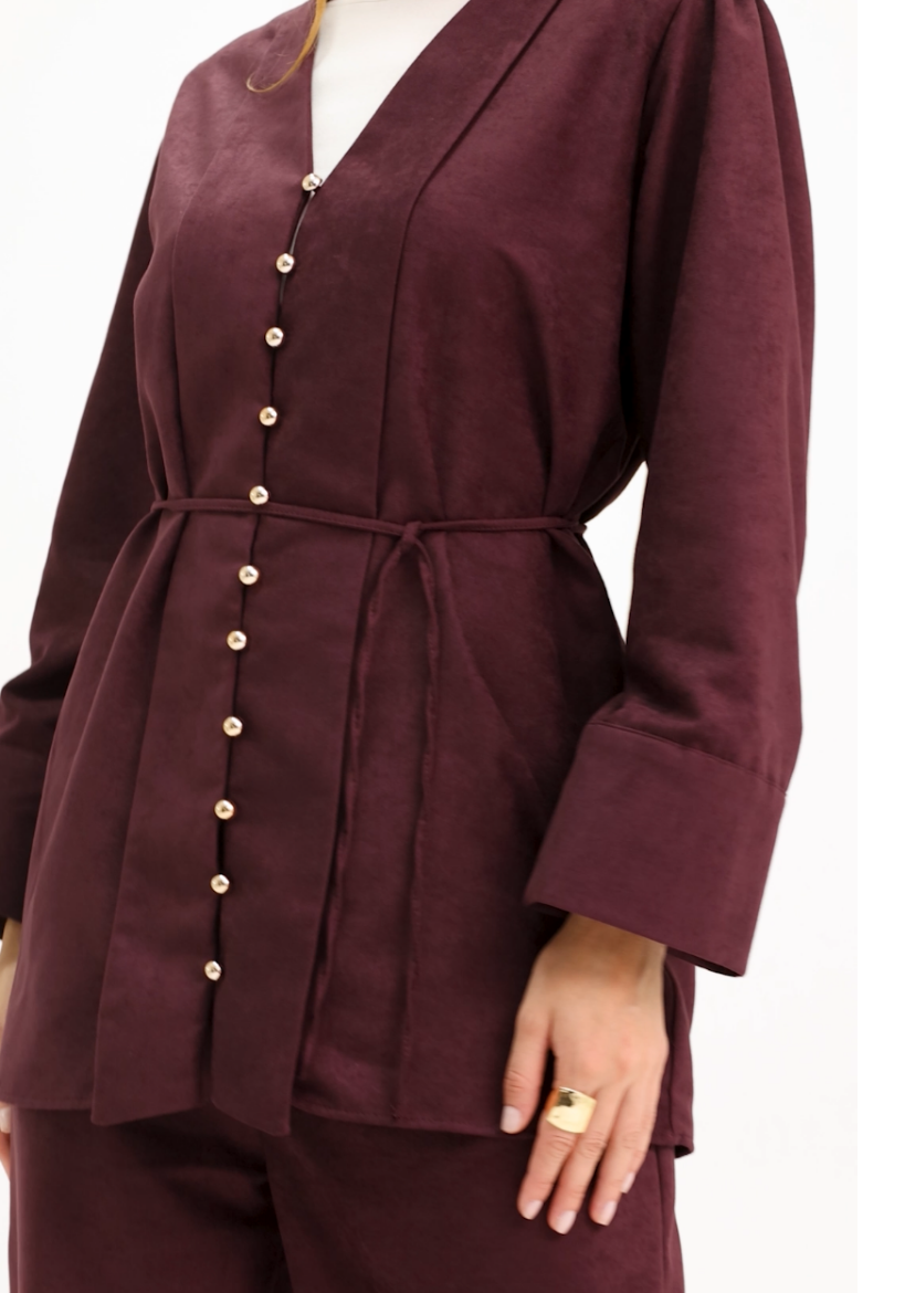 Bağlama Detaylı Rahat Kalıp Gold Düğmeli Süet Şık Takım