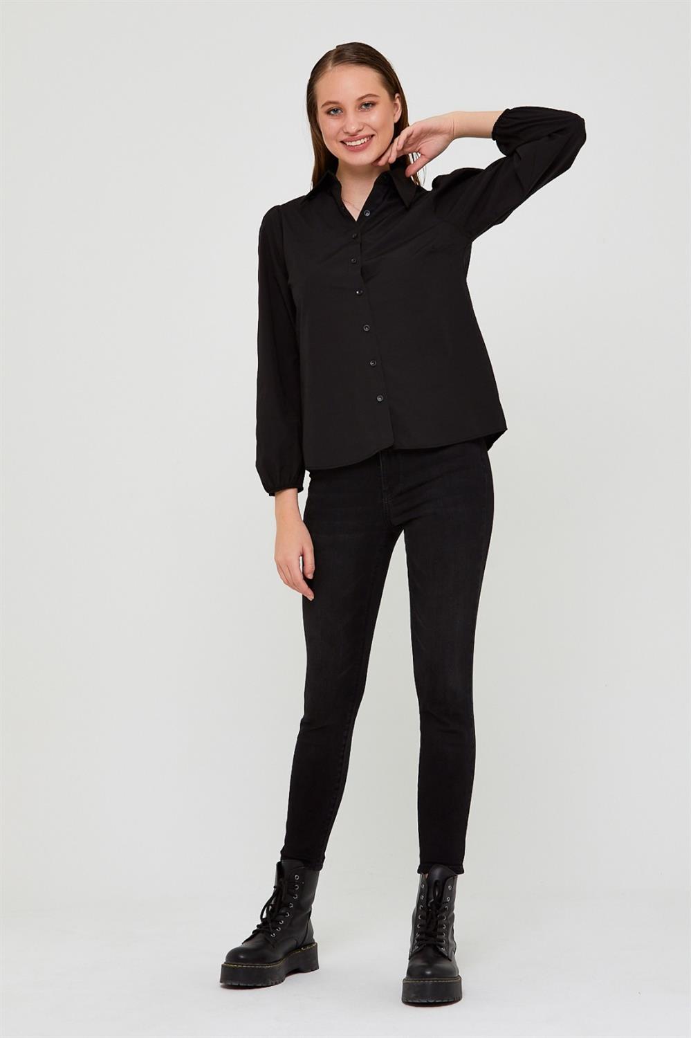 Kadın Basic Kesim Vücudu Saran Likralı Gizli Düğme Özellikli Gömlek