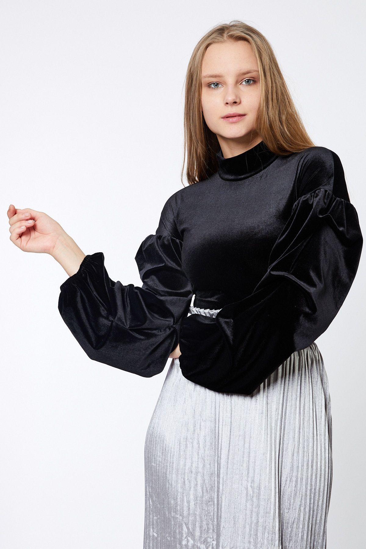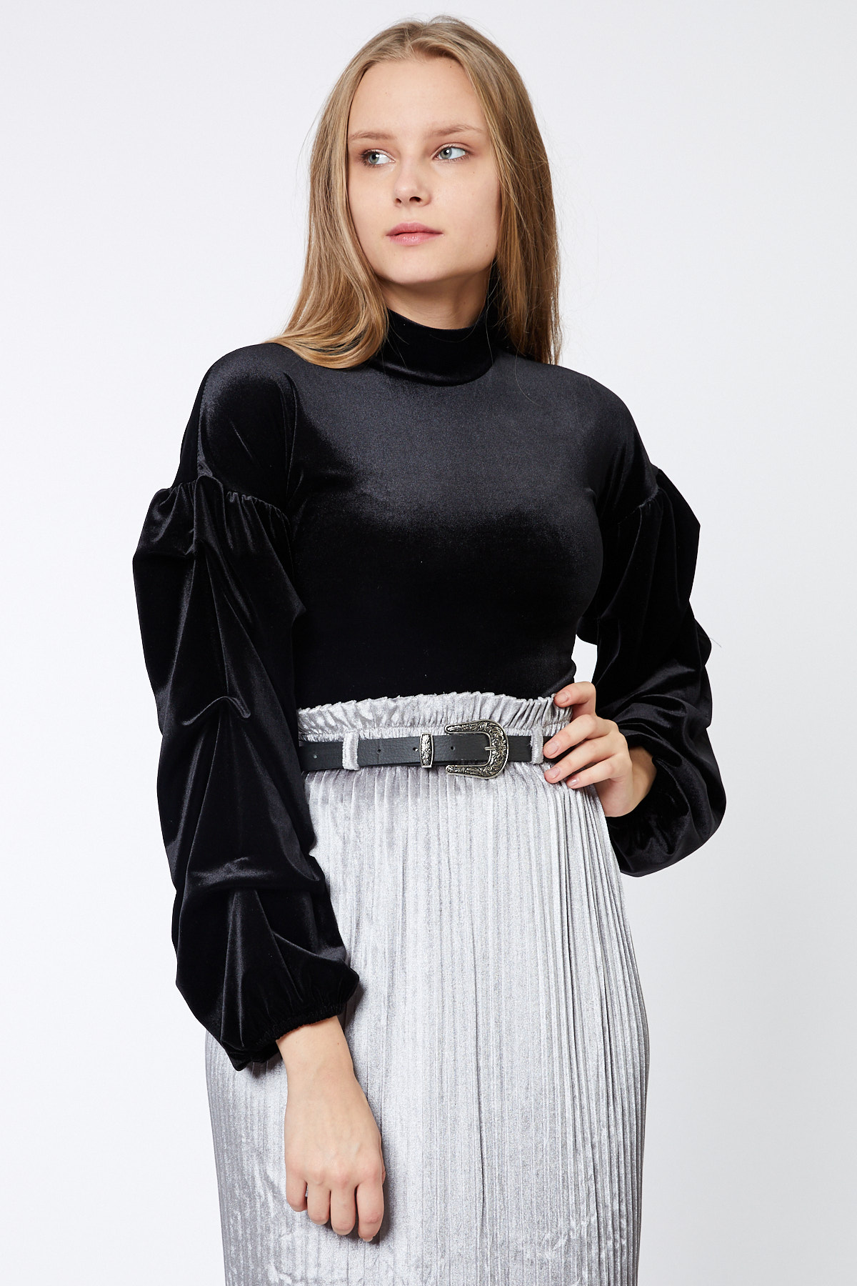 Ürün Özellikleri: Yarım balıkçı yaka, karpuz kol,crop model, kadife bluz.
