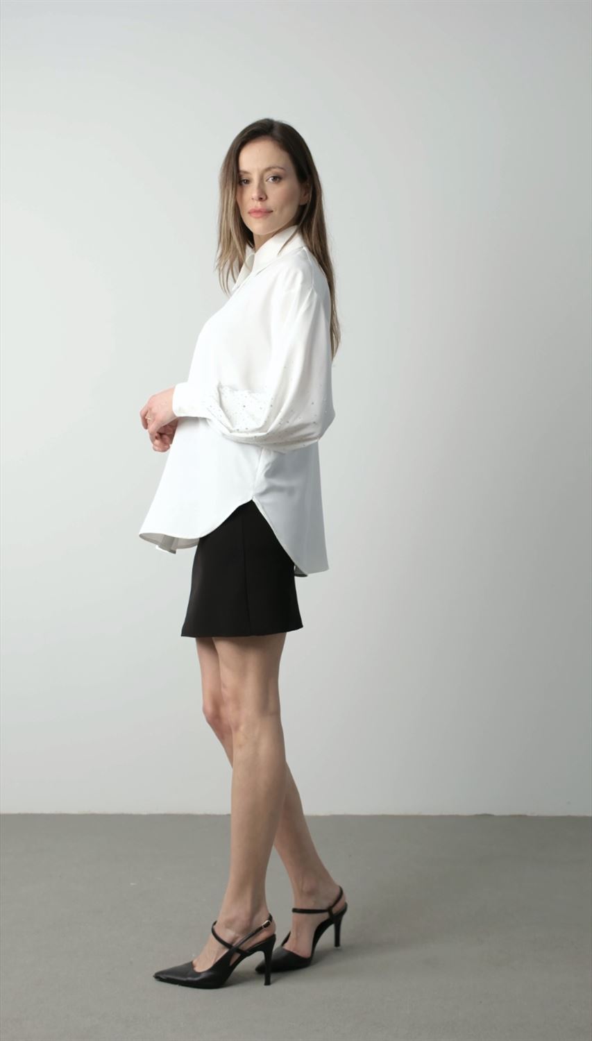 Balon kol detayları ile feminen bir siluet sunarken, taş işlemeleriyle ışıltılı bir dokunuş katıyor. İç göstermeyen özel kumaşı sayesinde hem konforlu hem de özgüvenli bir kullanım sağlar.