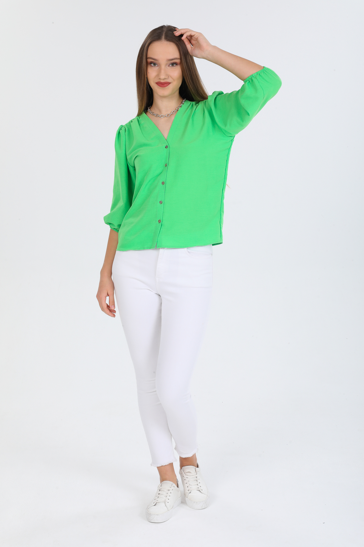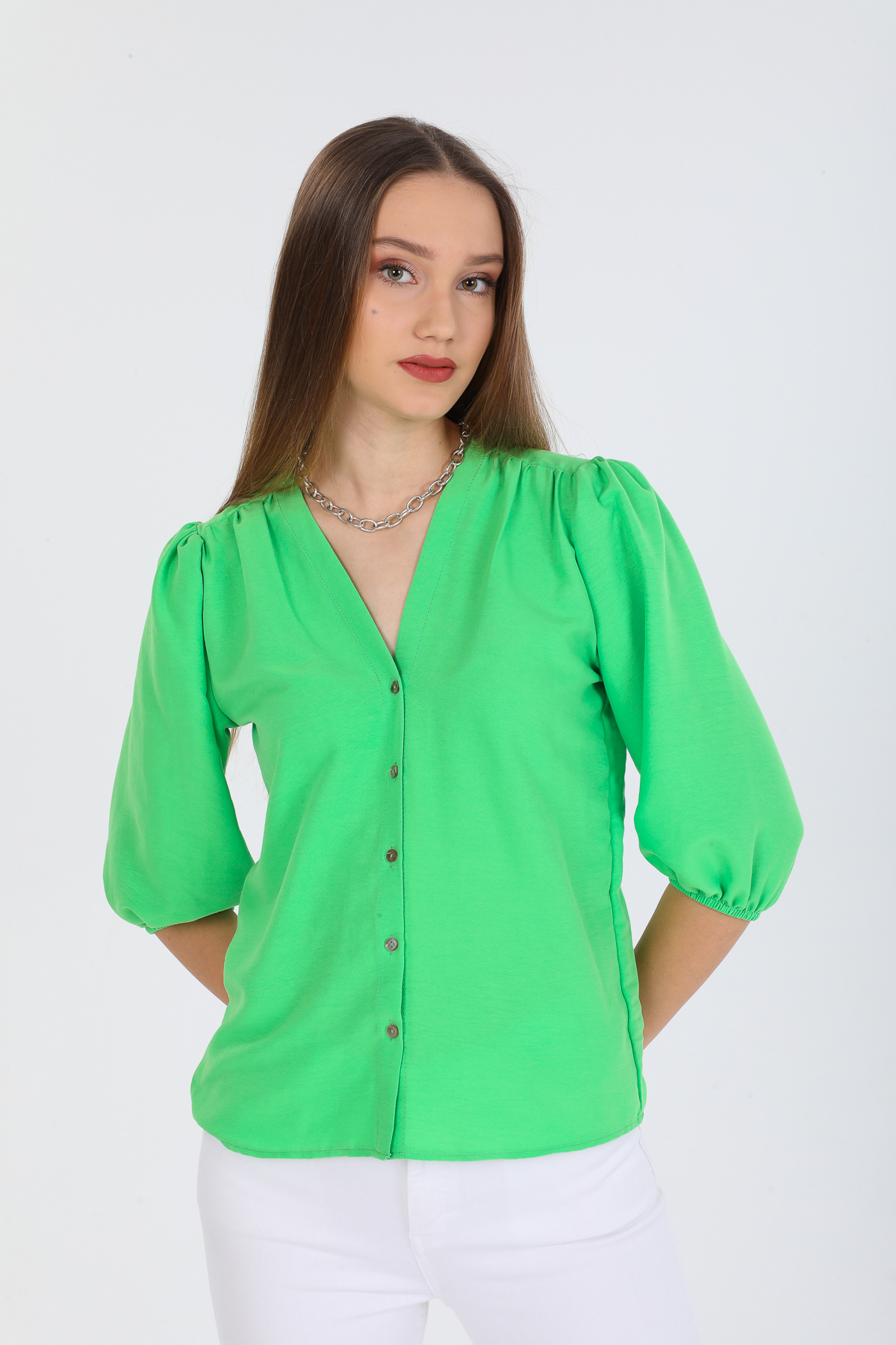 Kadın Basic Gizli Düğme Gömlek