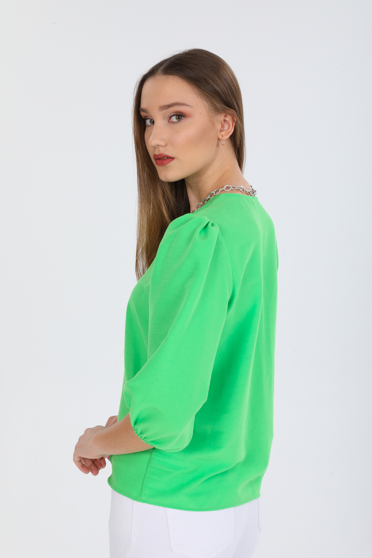 Önü Fırfırlı Dökümlü İç Göstermeyen Bluz Şık Gömlek
