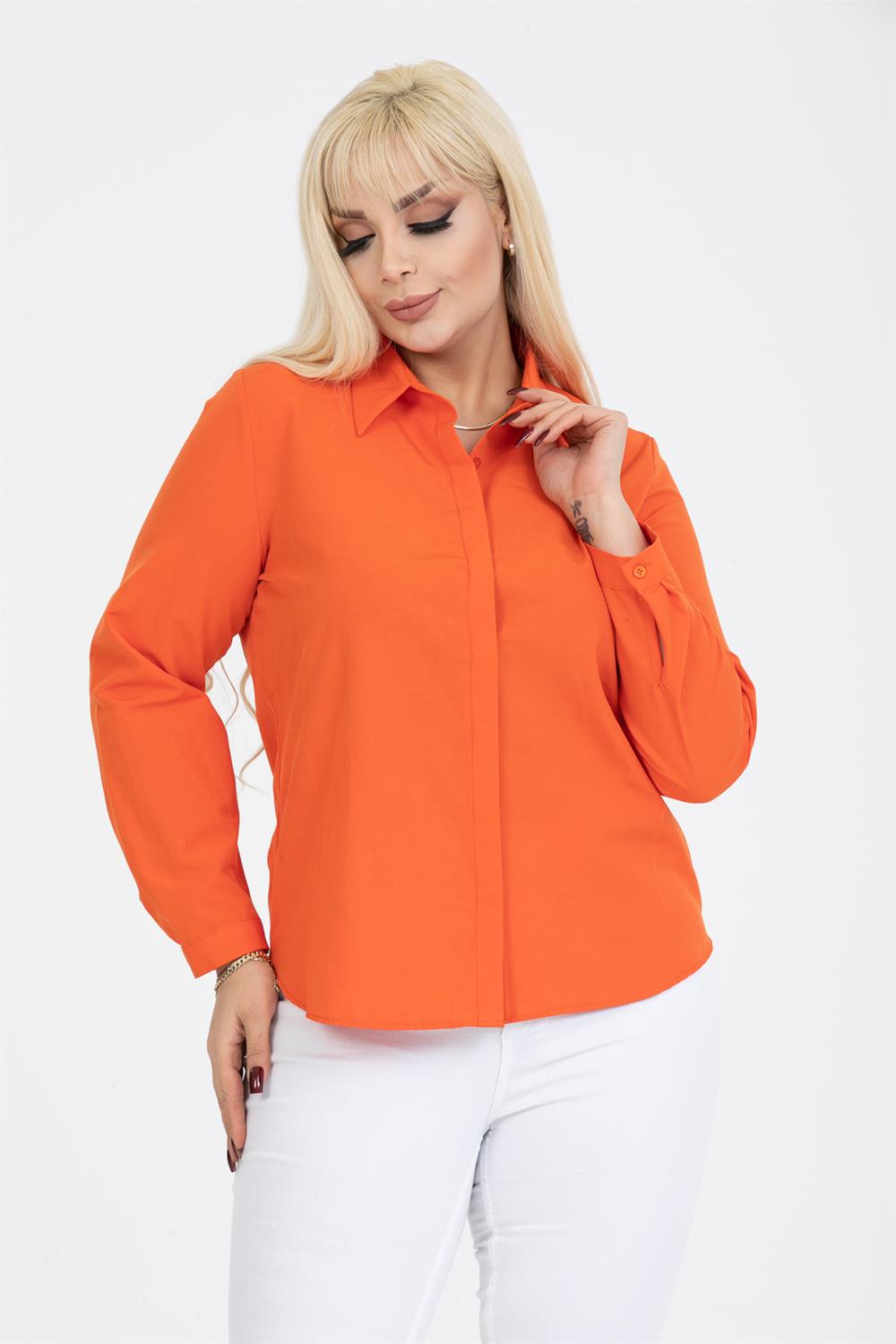 Basic Gizli Düğmeli Büyük Beden Gömlek