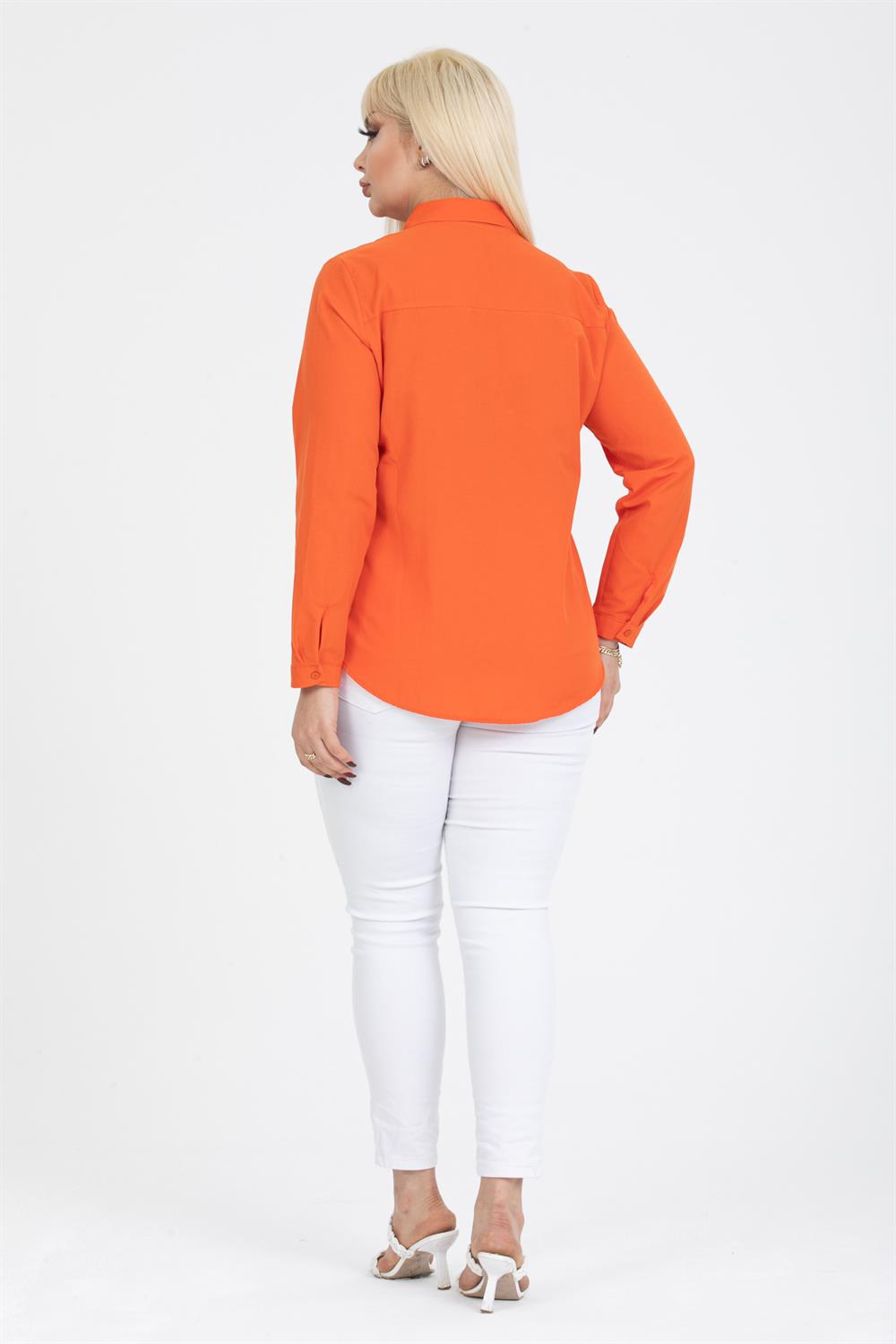 Kadın Gizli Düğme Özellikli Cepli Tunik Gömlek