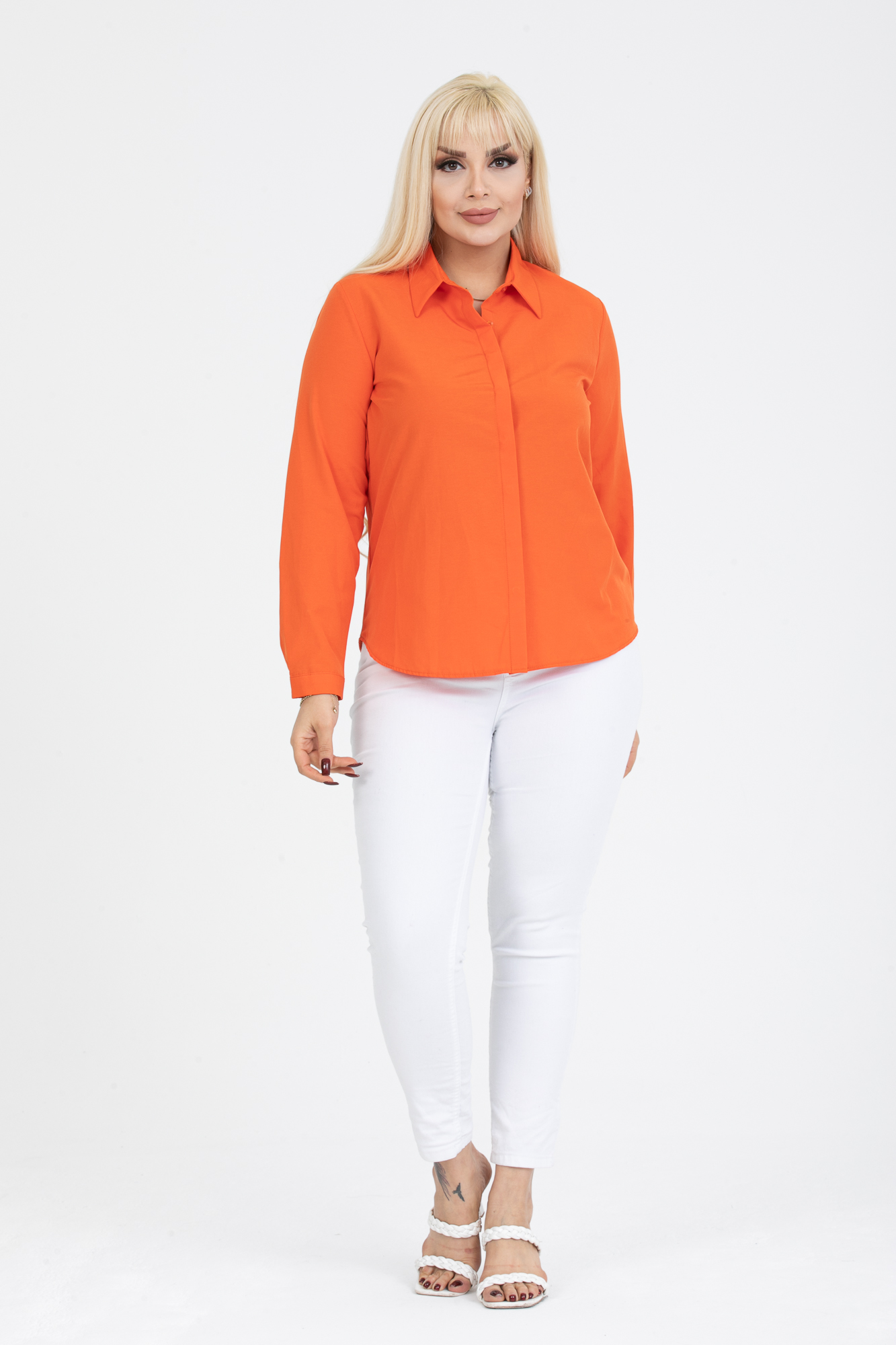 Kadın Basic Gizli Düğme Gömlek