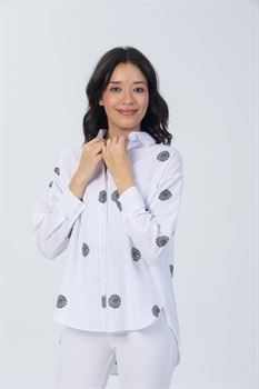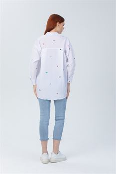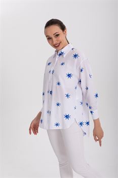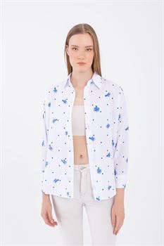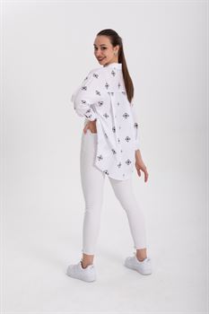 Baskılı Oversize Poplin Gömlek