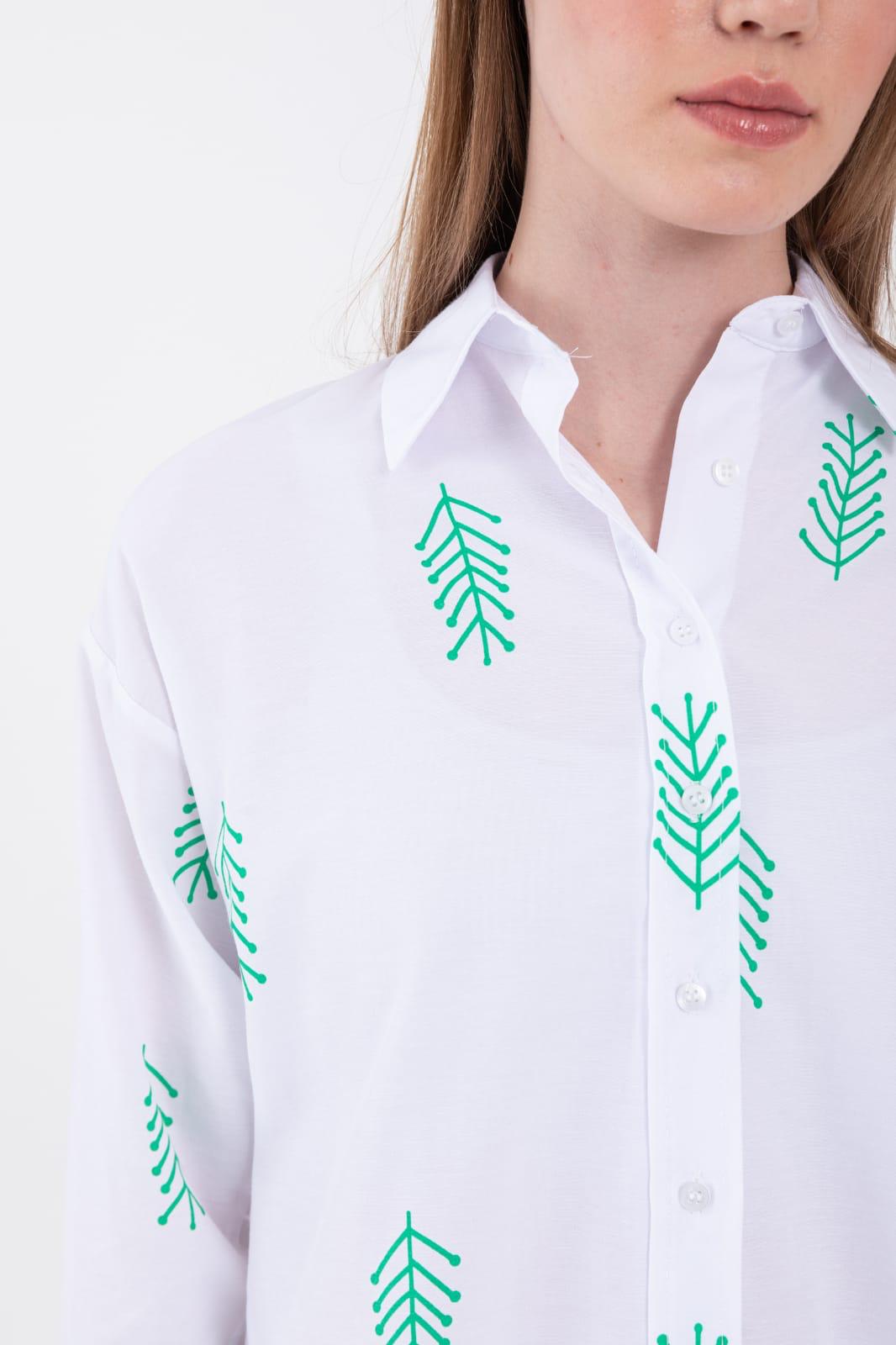 Baskılı Oversize Poplin Gömlek