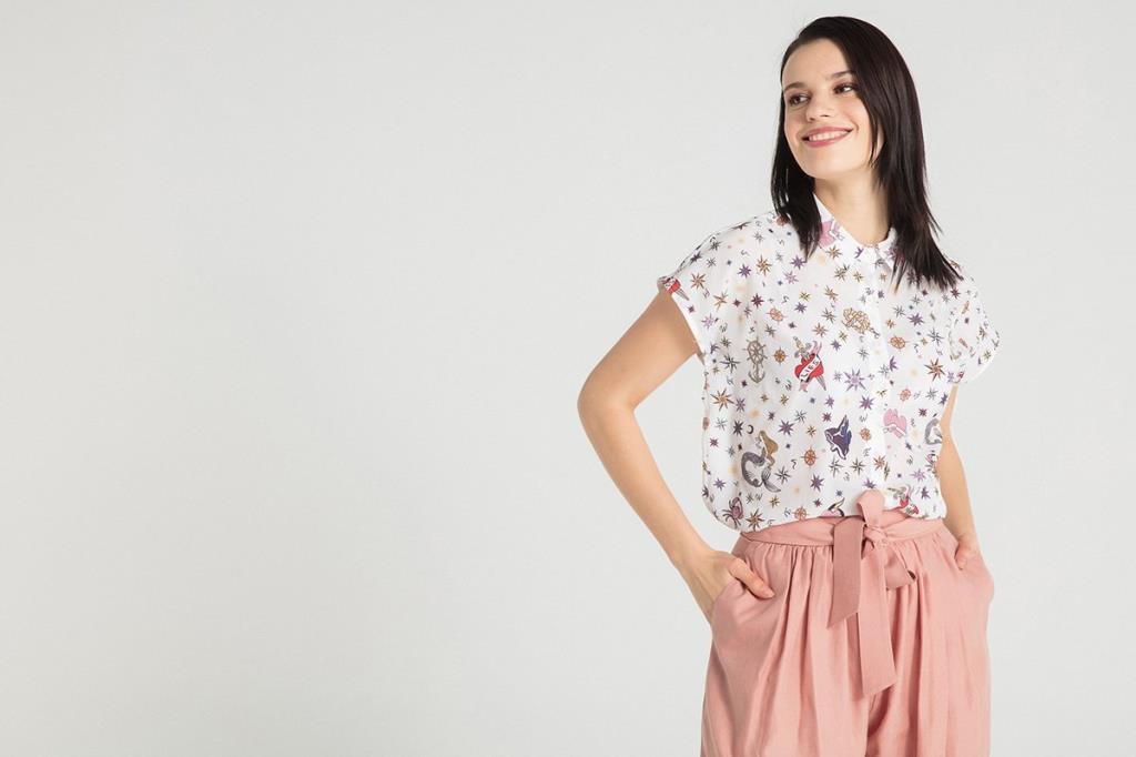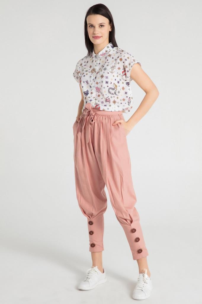 Baskılı Pembe Gömlek