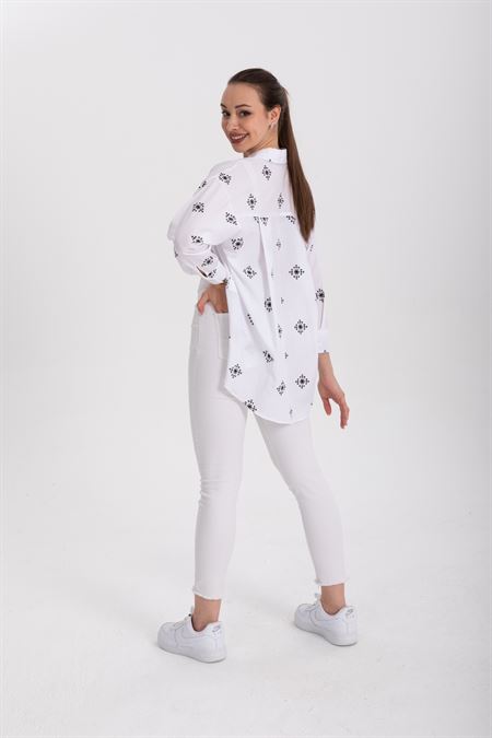 Baskılı Oversize Poplin Gömlek