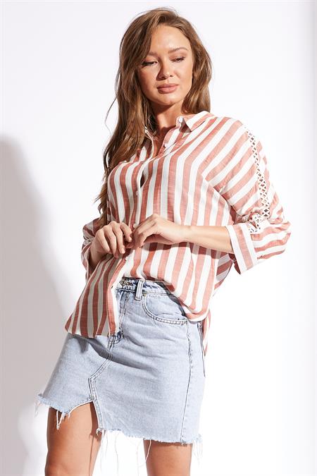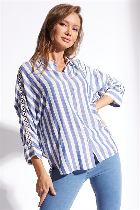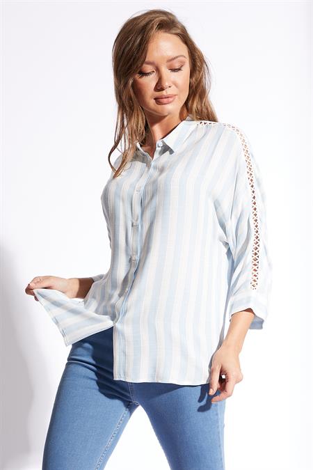 Dantel Detaylı Fakir Kol Çizgili Gömlek