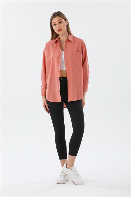 Tahta Düğmeli Cep Detaylı Beyaz Gömlek