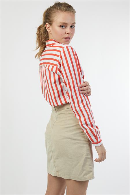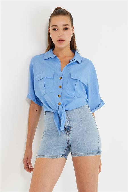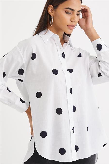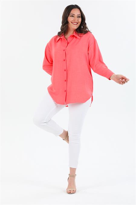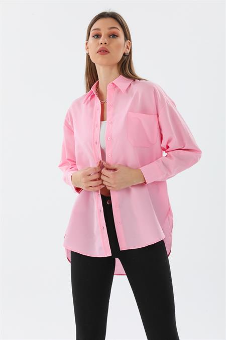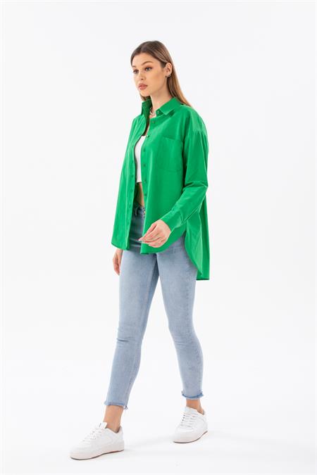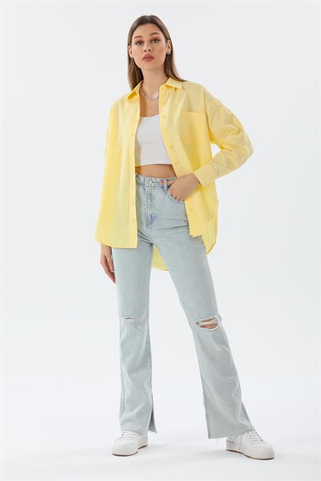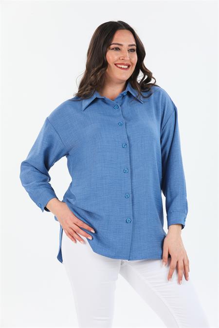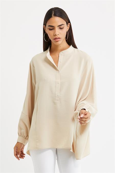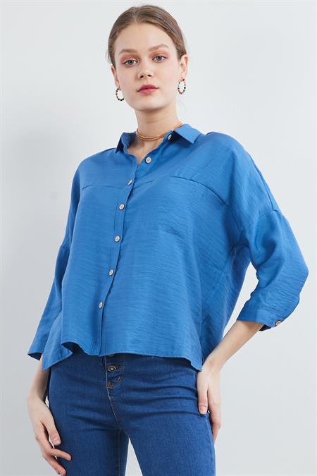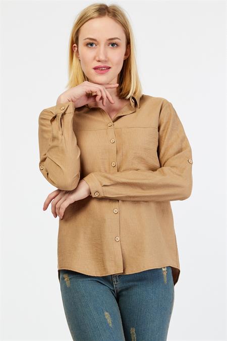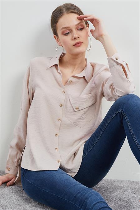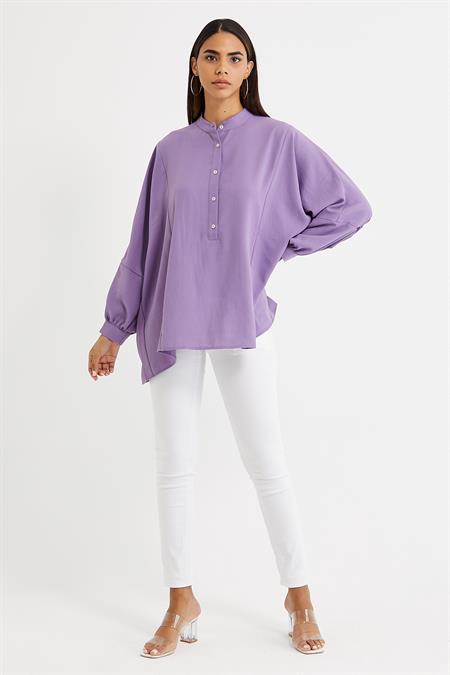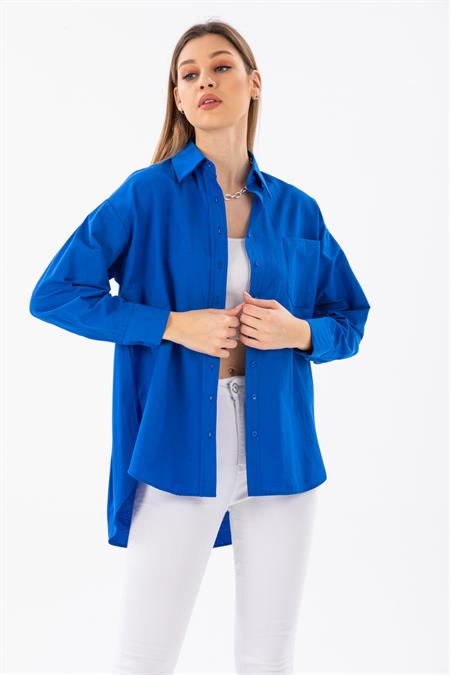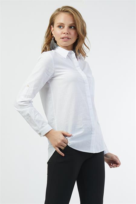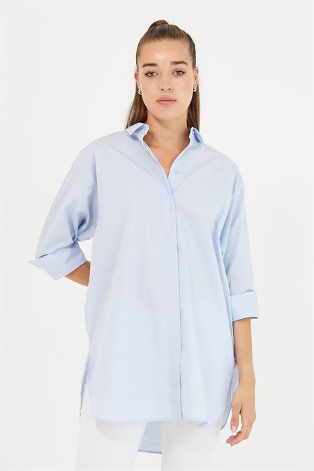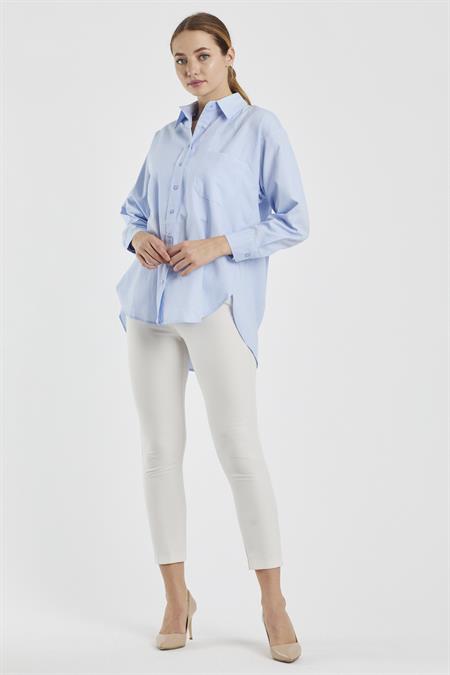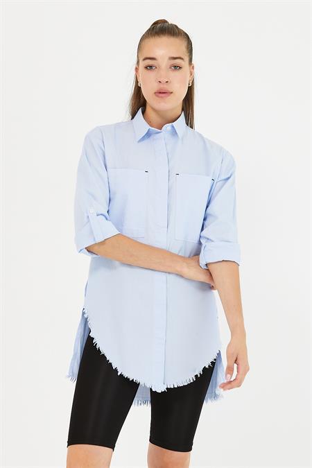 Önü Kısa Arkası Uzun Düğme Detaylı Gömlek
