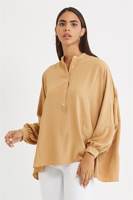 Oversize Kesim Balon Kol Uzun Piliseli Şık Kadın Tunik Gömleği