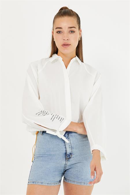 Tahta Düğmeli Cep Detaylı Beyaz Gömlek