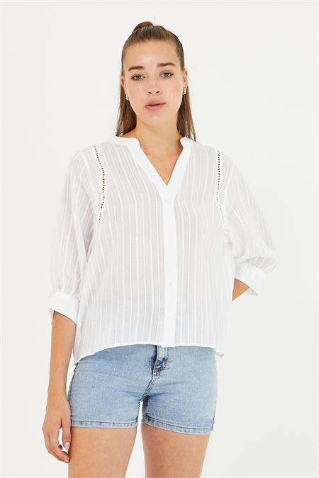 Güpür Detaylı Çizgili Beyaz Gömlek