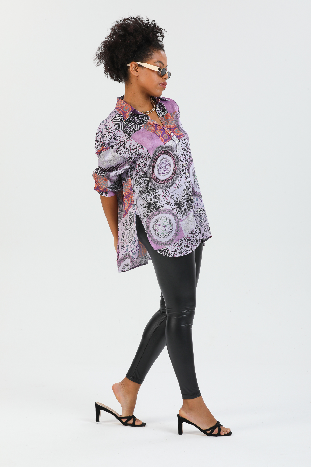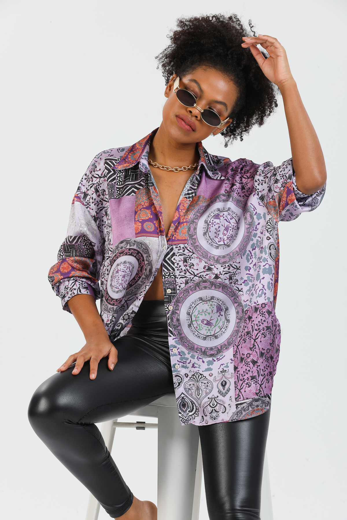 Kadın Gizli Düğme Özellikli Cepli Tunik Gömlek