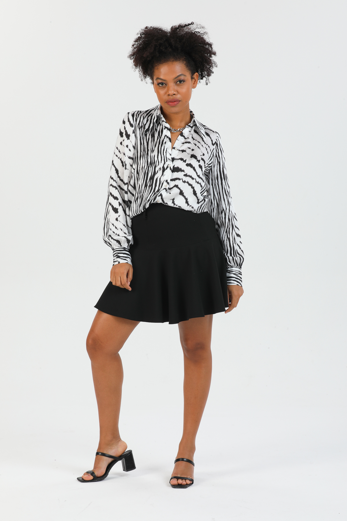 Önü Fırfırlı Dökümlü İç Göstermeyen Bluz Şık Gömlek