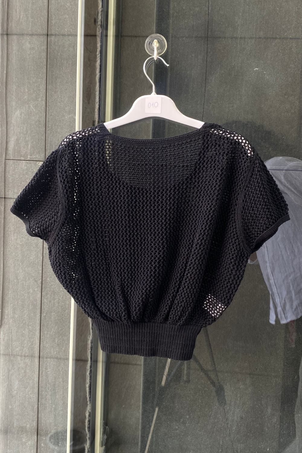 Beli Lastikli Ajurlu Triko Örme Bluz