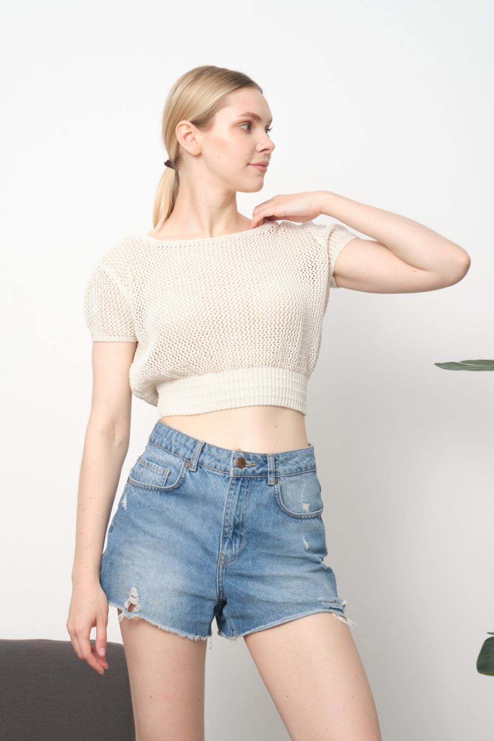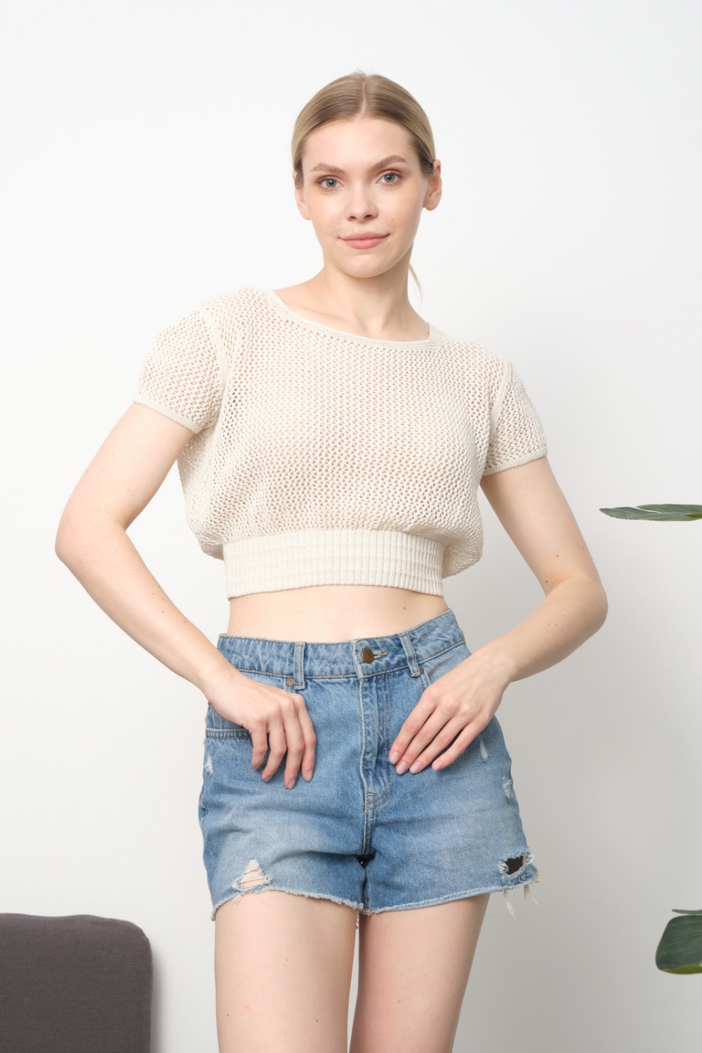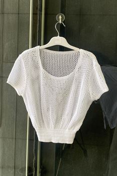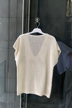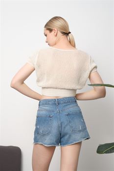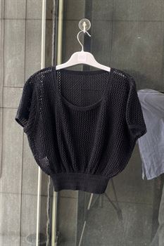Beli Lastikli Ajurlu Triko Örme Bluz
