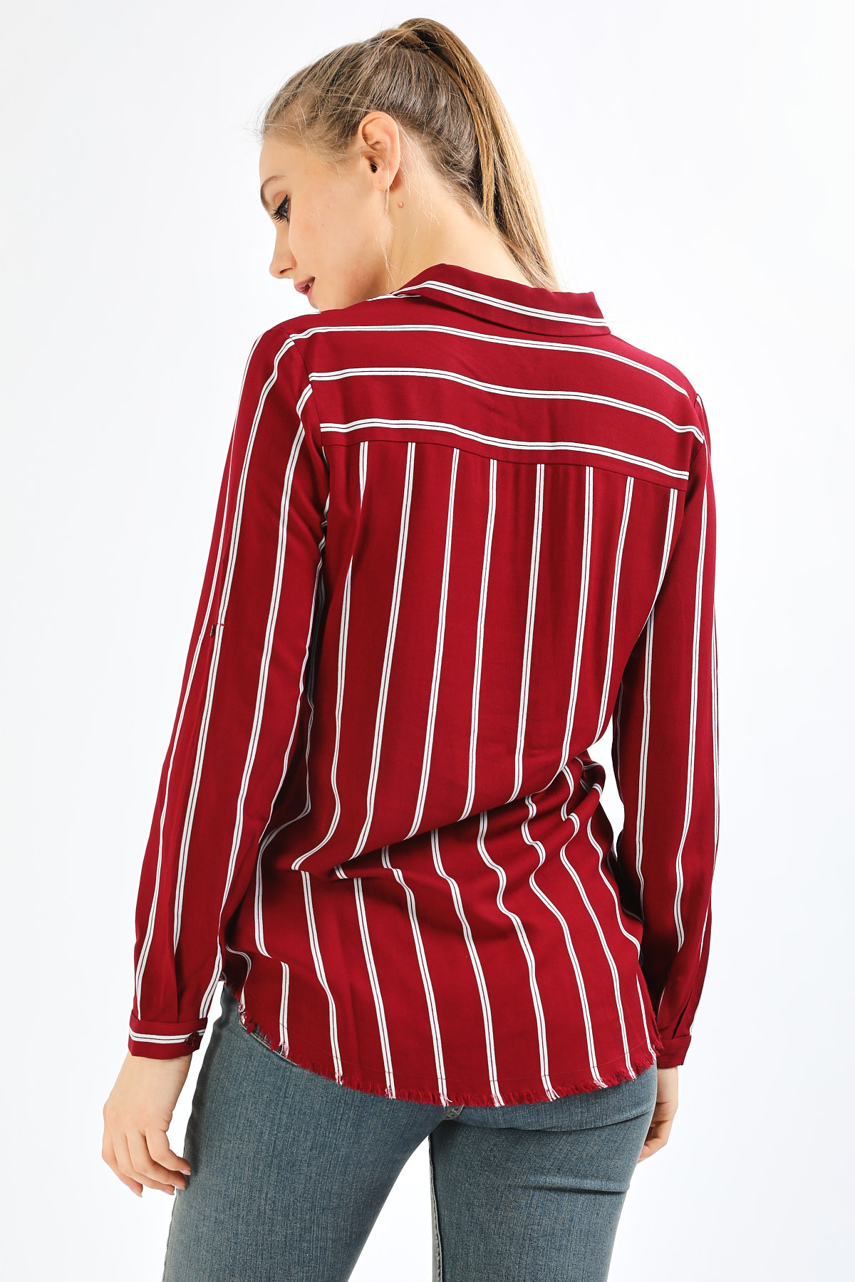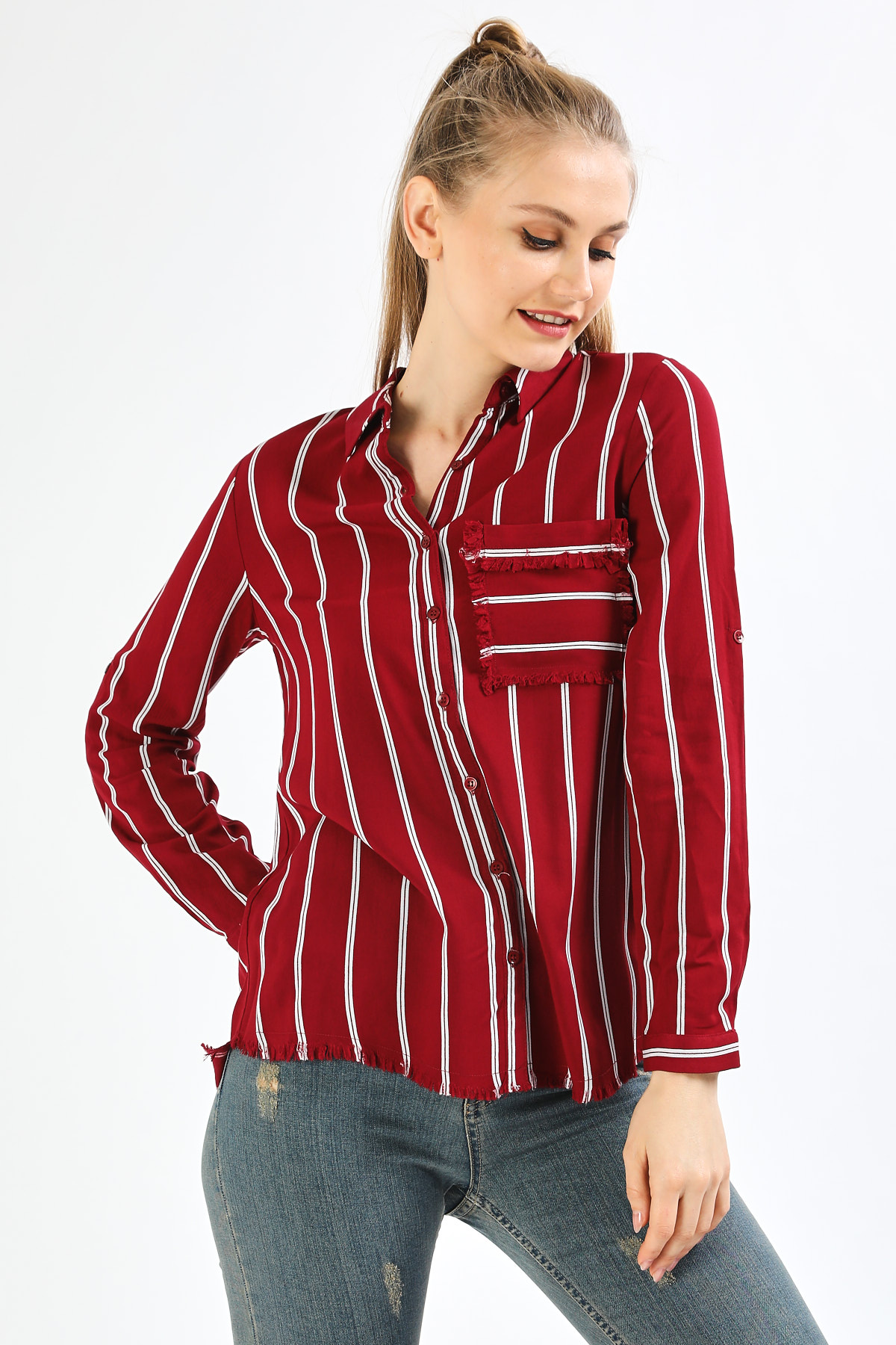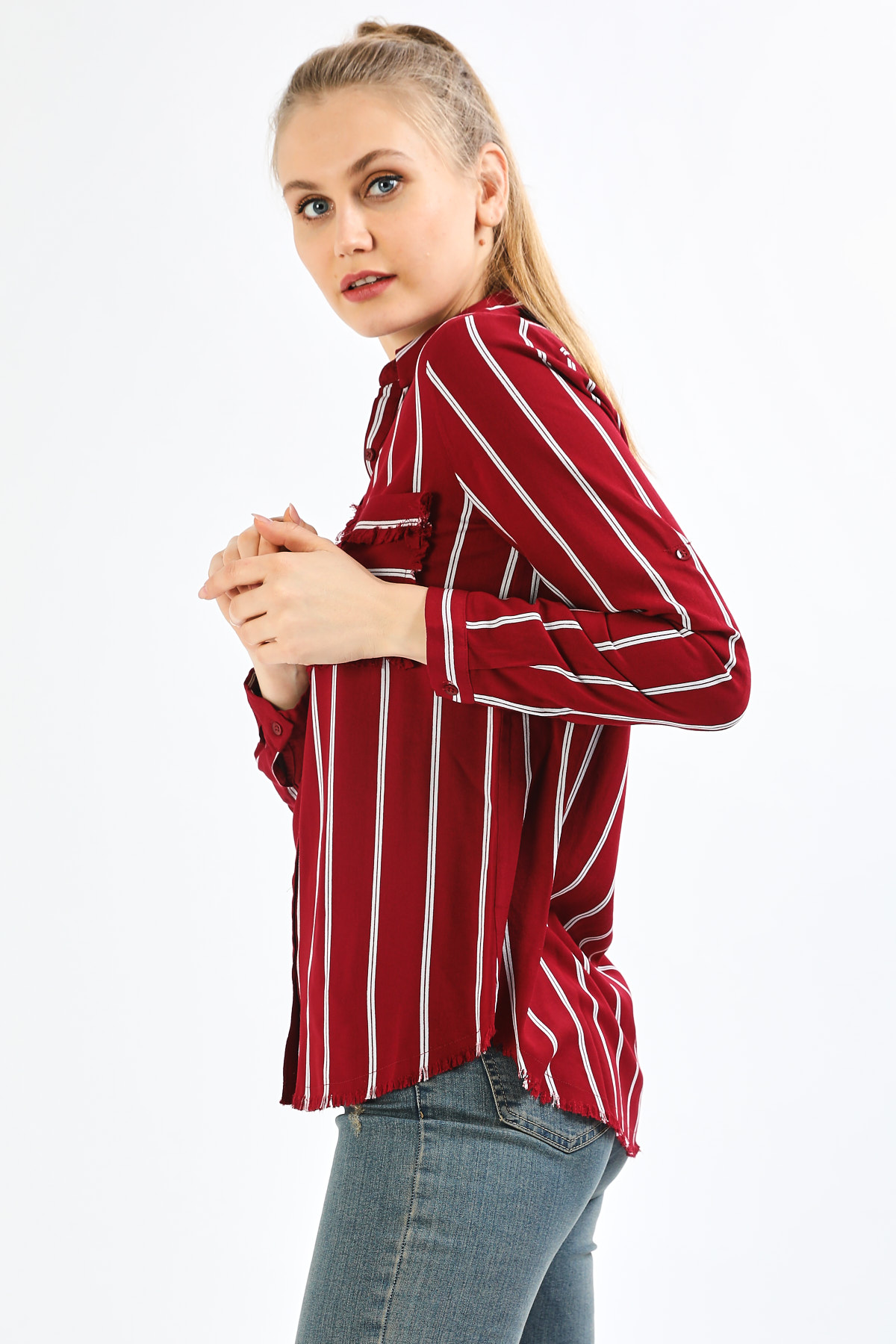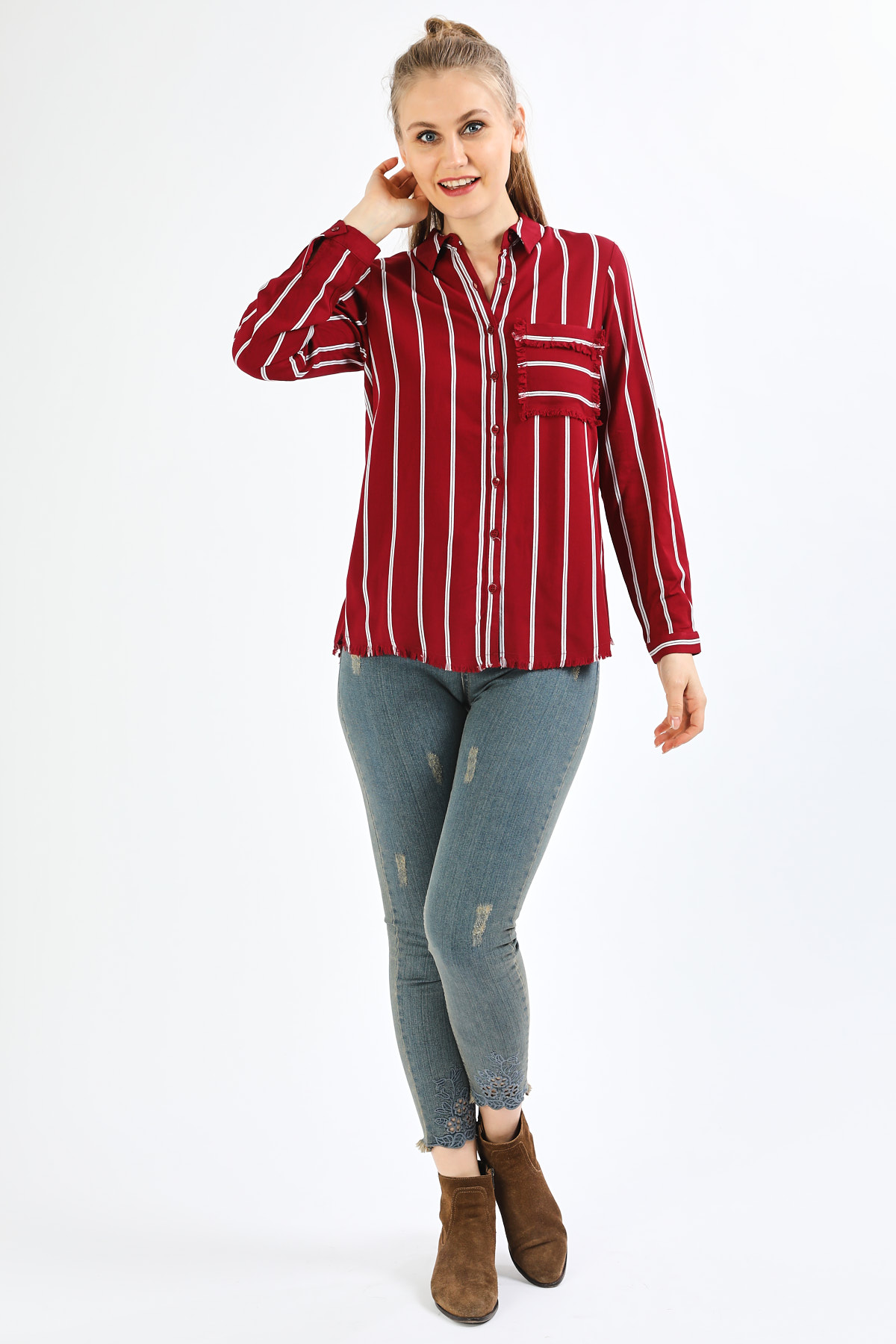 Beyaz Çizgili Püskül Detaylı Bordo Gömlek