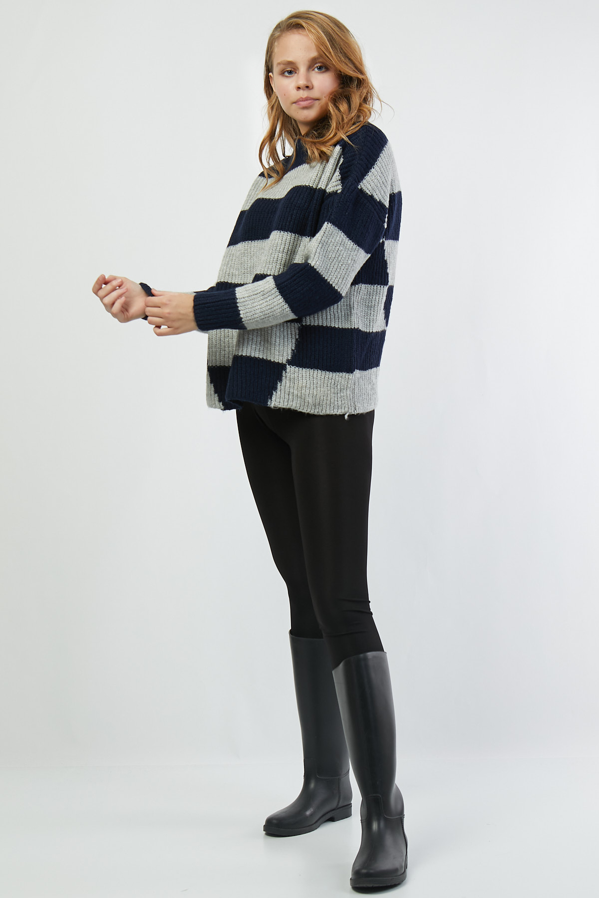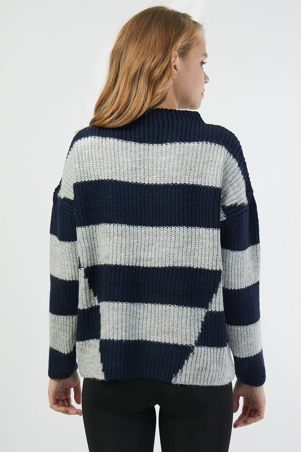 Ürün Özellikleri:Boğazlı yaka, geniş kalıp, iki renk kazak.