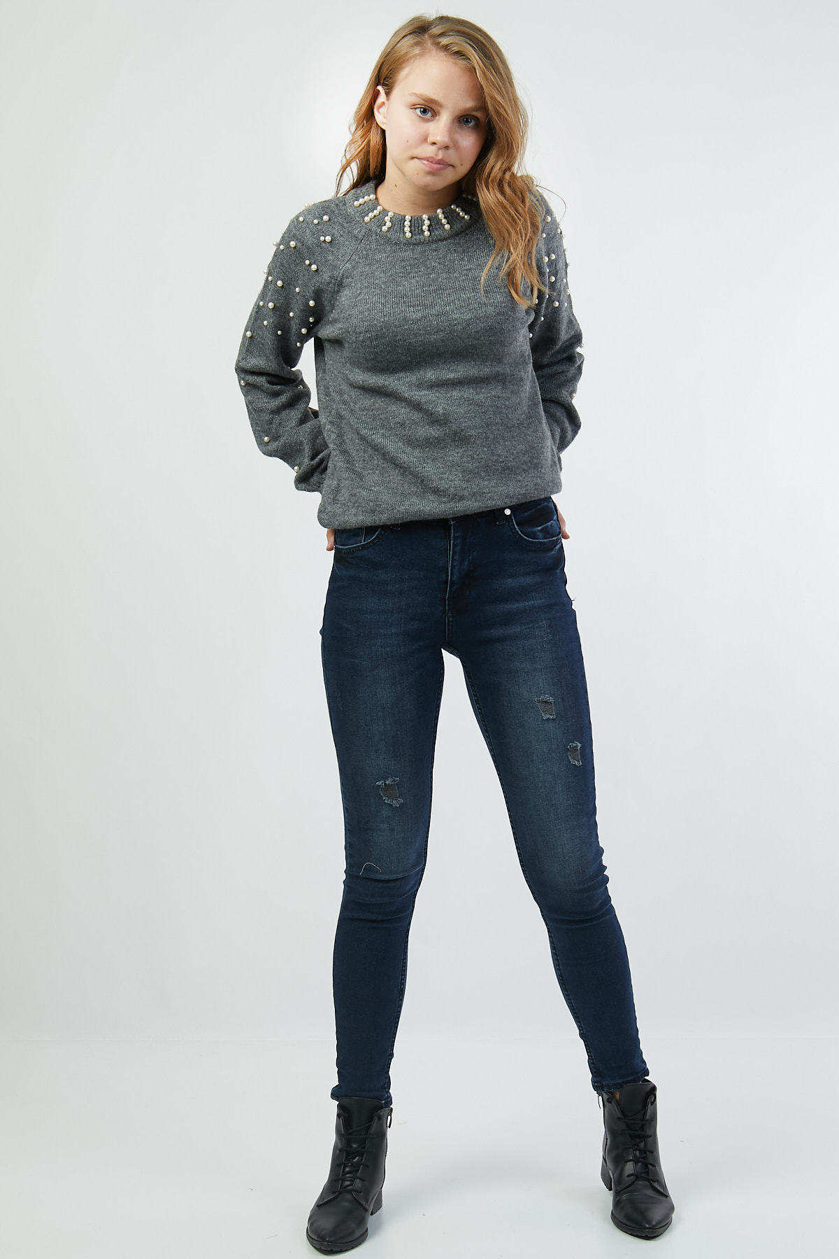 Ürün Özellikleri:İnci boncuk detaylı, tam kalıp kazak.