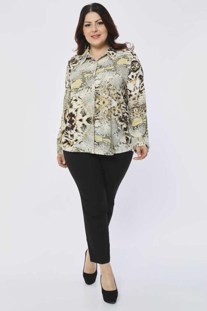 Ürün Özellikleri: Klasik yaka, gizli düğme detaylı, tam kalıp, uzun kollu büyük beden gömlek.