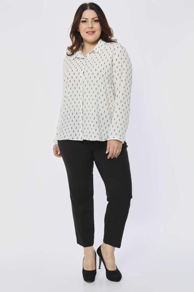 Ürün Özellikleri: Klasik yaka özellikli, gizli düğme iliklemeli, bol kalıp, uzun kollu büyük beden gömlek.