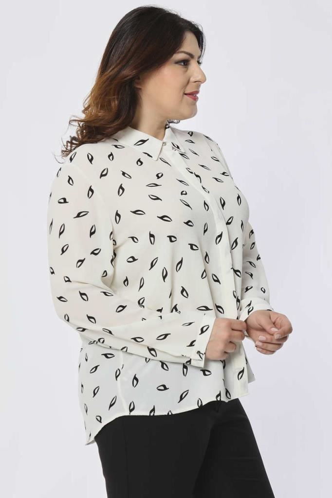 Ürün Özellikleri: Klasik yaka özellikli, gizli düğme iliklemeli, bol kalıp, uzun kollu büyük beden gömlek.