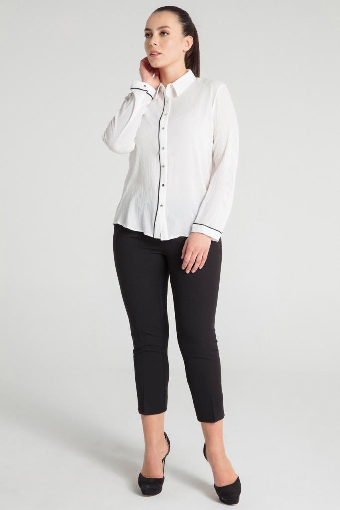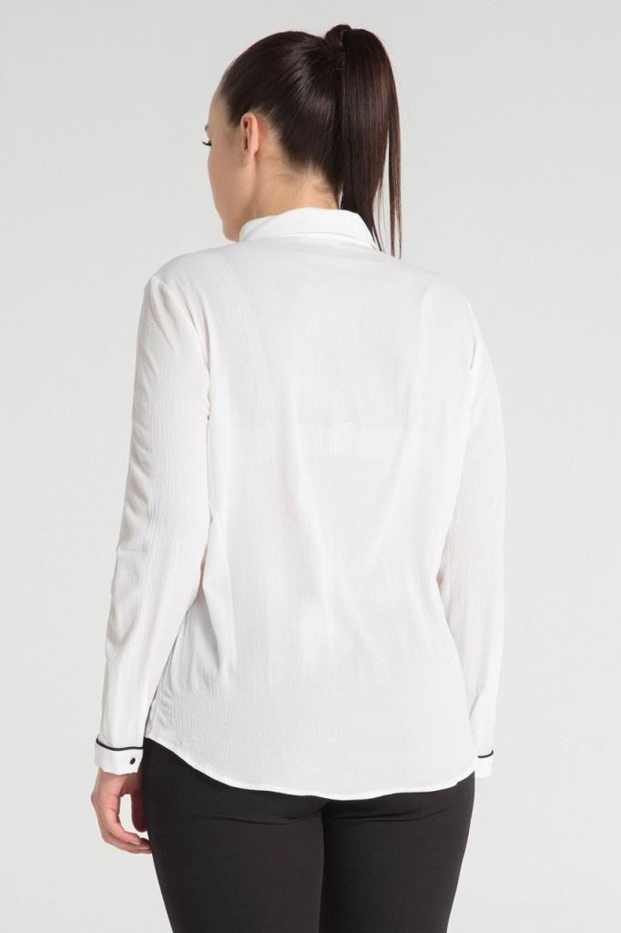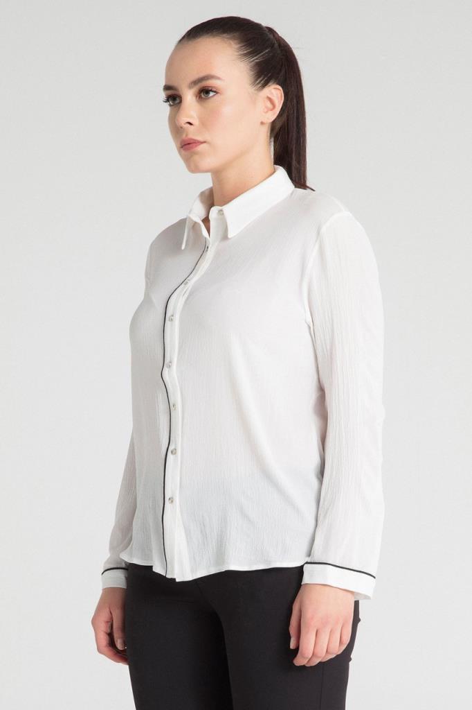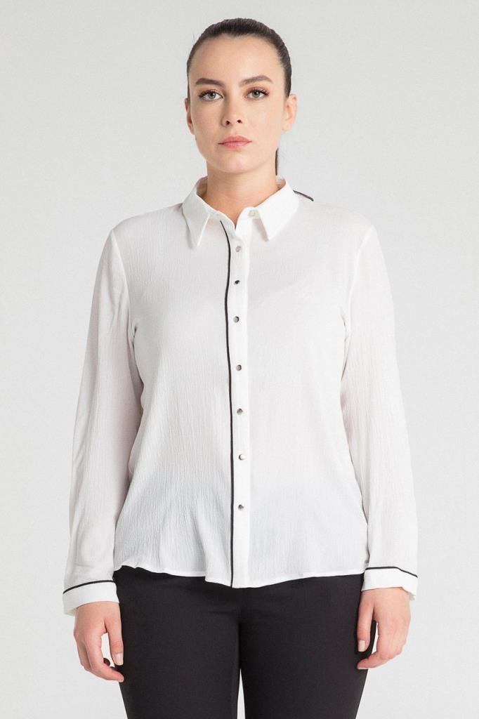 Ürün Özellikleri: Klasik yaka özellikli, gümüş rengi düğme detaylı, biye özellikli, bol kalıp, uzun kollu büyük beden gömlek.