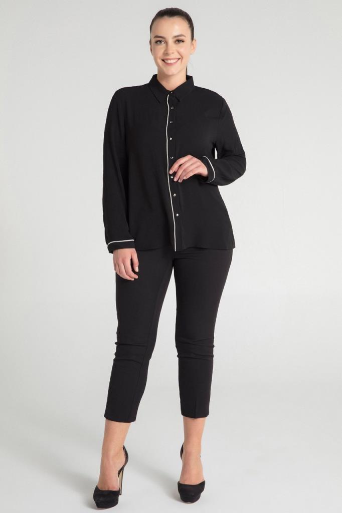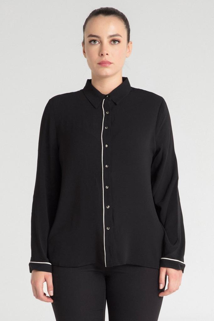 Büyük Beden Biye Özellikli Siyah Gömlek