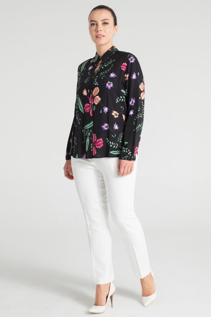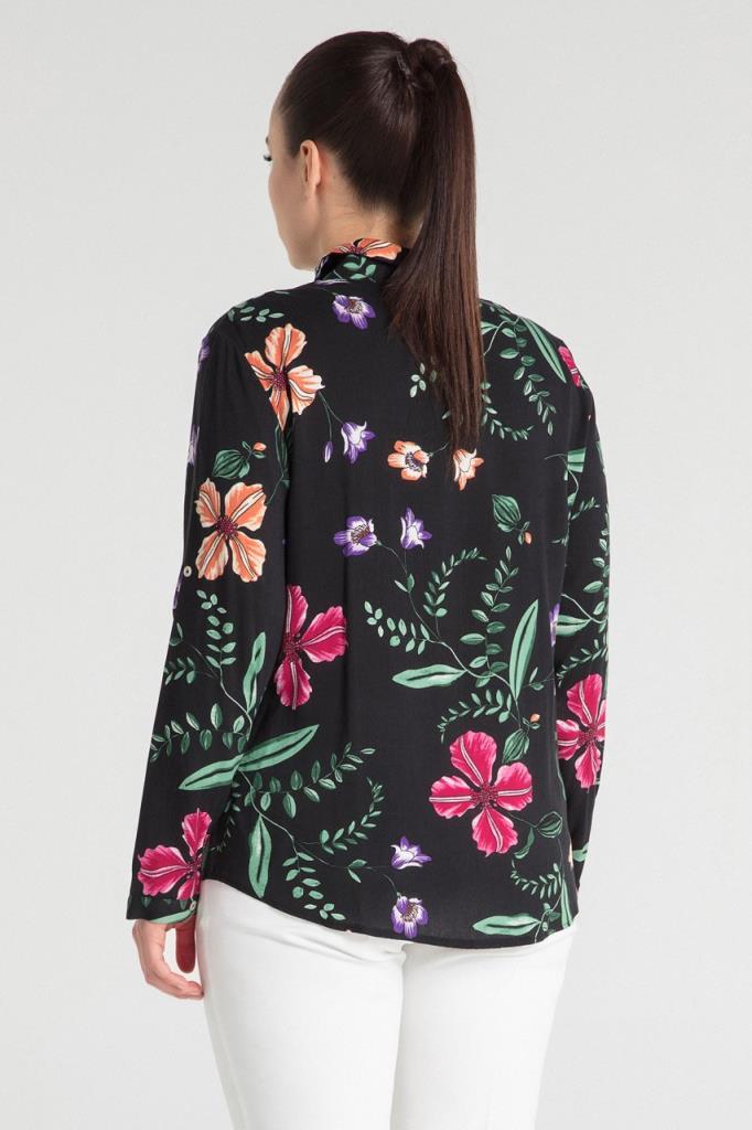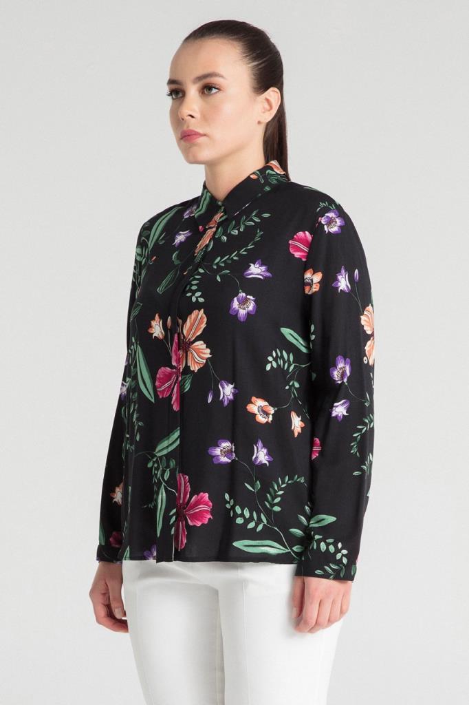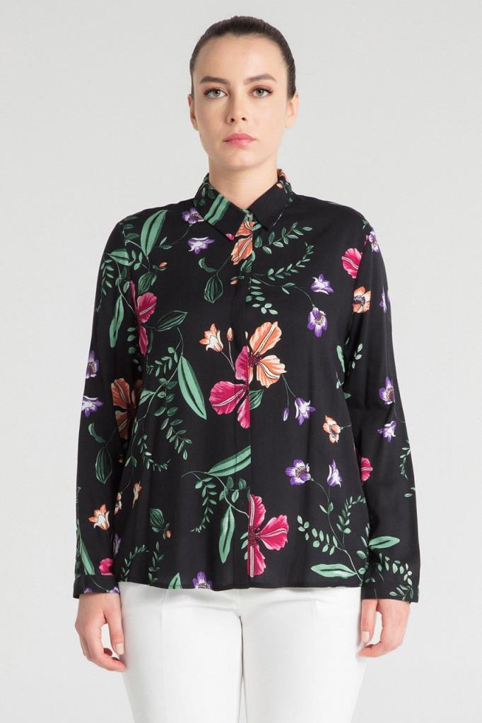 Büyük Beden Çiçek Baskılı Siyah Gömlek