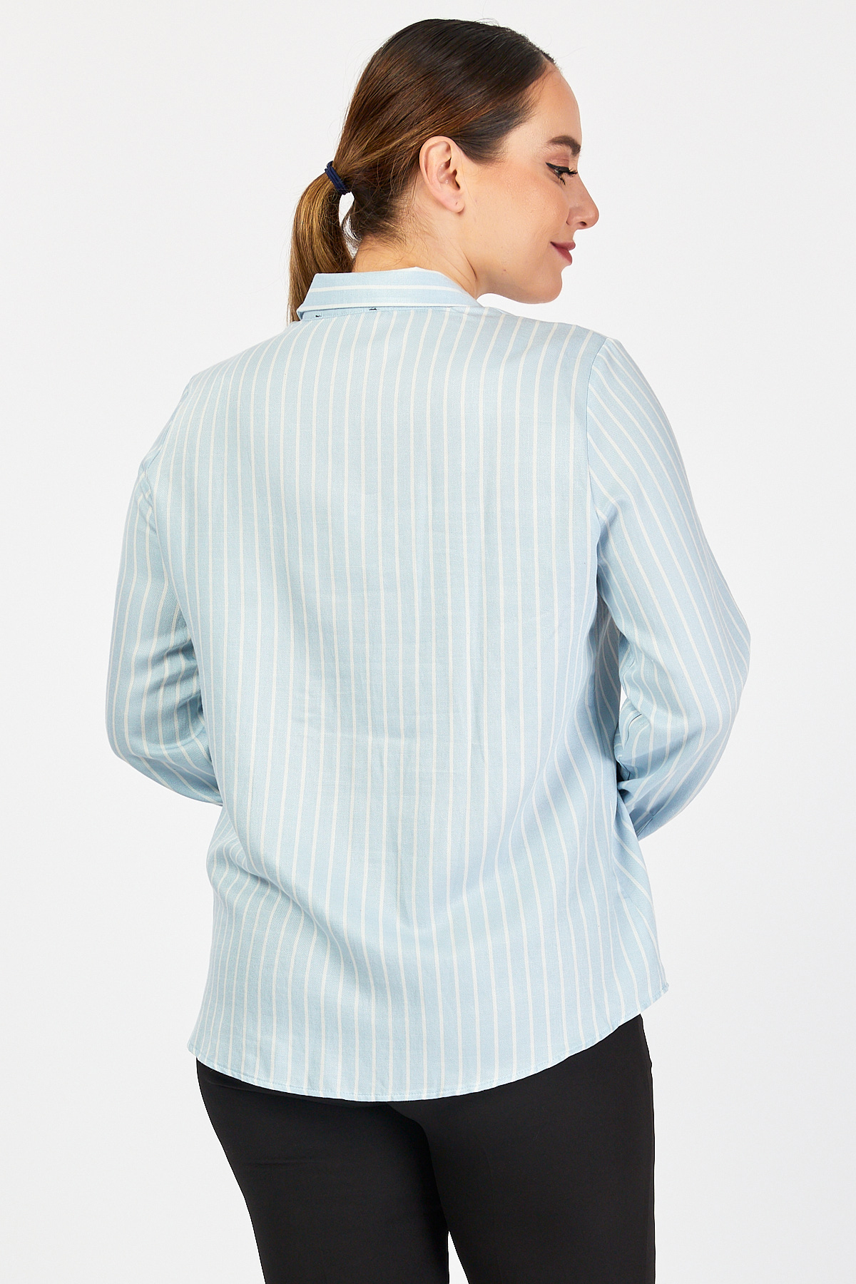 Büyük Beden Çizgili Mavi Gömlek