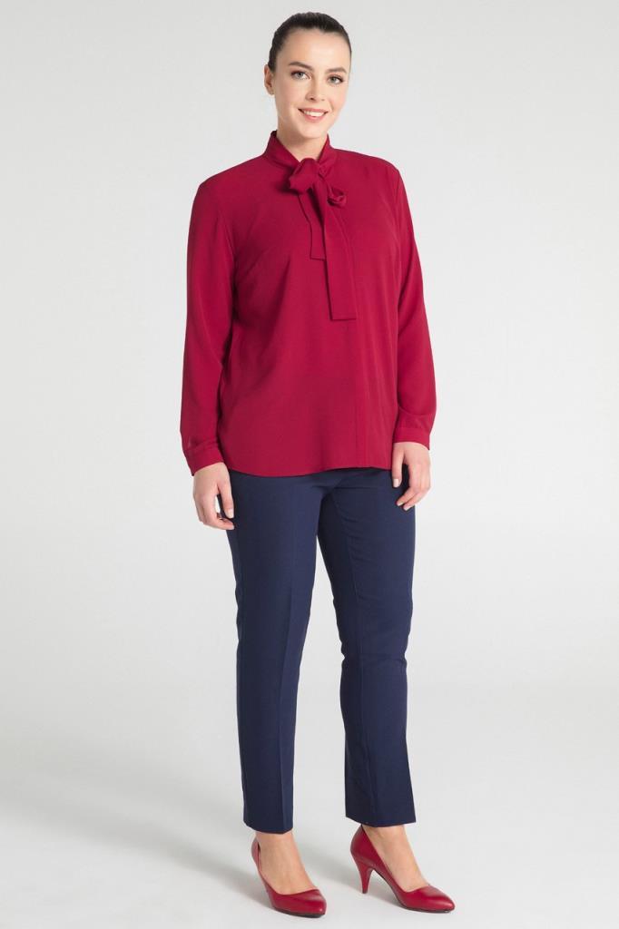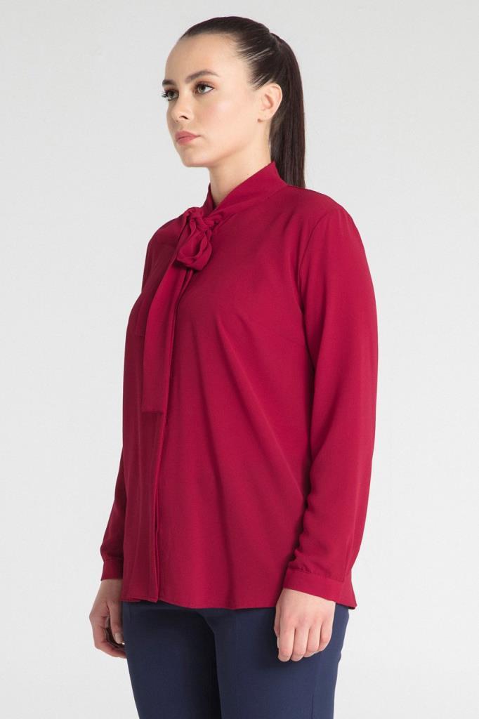 Büyük Beden Fular Özellikli Kırmızı Gömlek