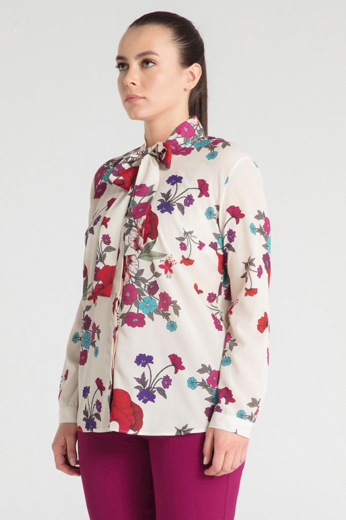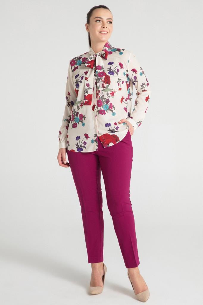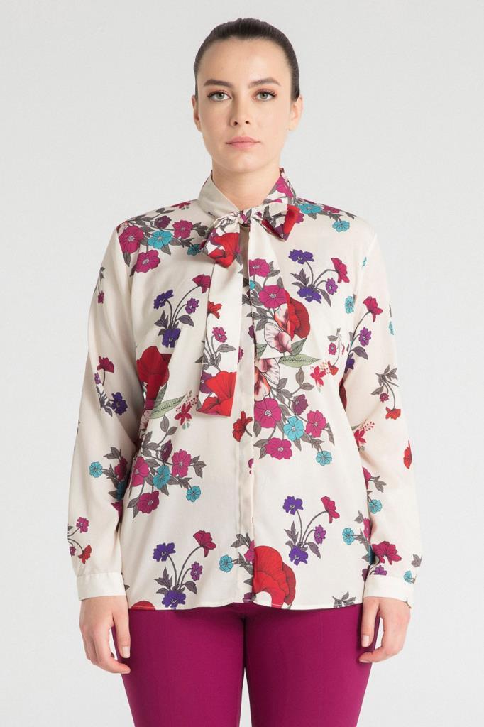 Ürün Özellikleri: Yakası fular detaylı, gizli düğme iliklemeli, tam kalıp, uzun kollu büyük beden gömlek.