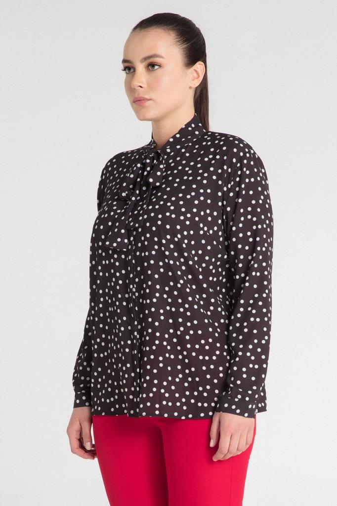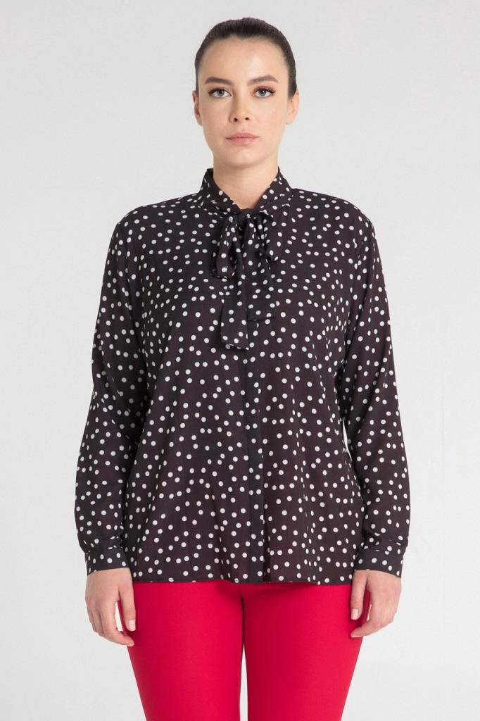 Büyük Beden Fular Özellikli Siyah Gömlek