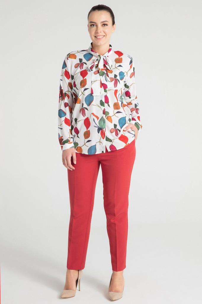 Büyük Beden Fular Özellikli Turuncu Gömlek