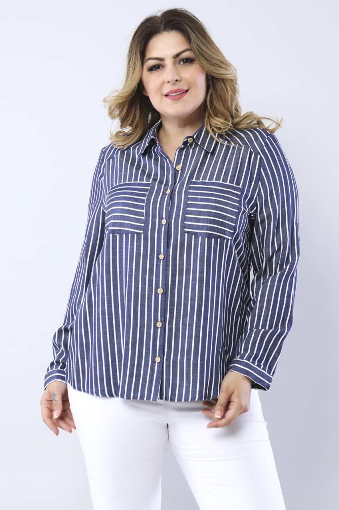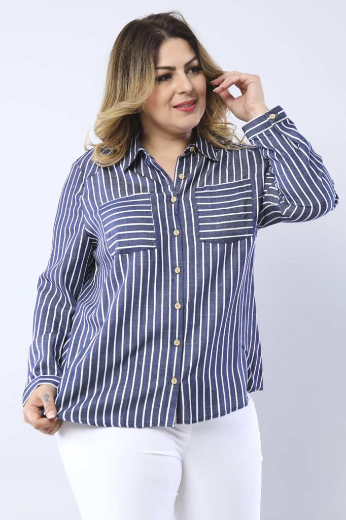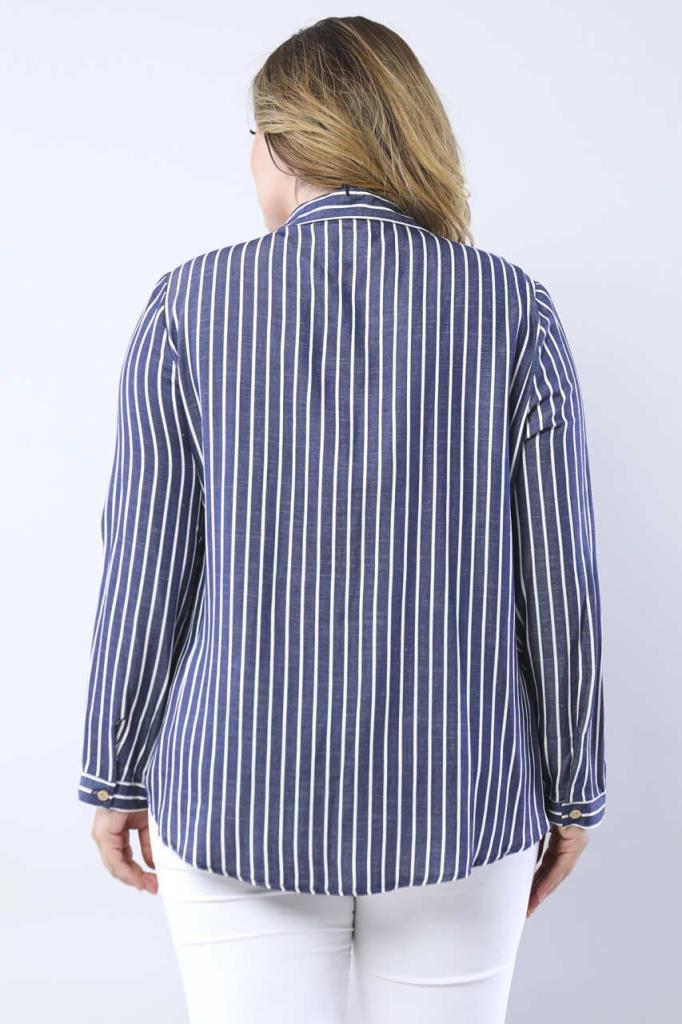 Büyük Beden Lacivert Çizgili Gömlek