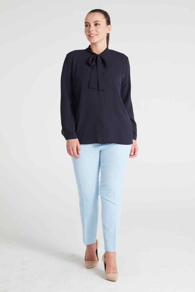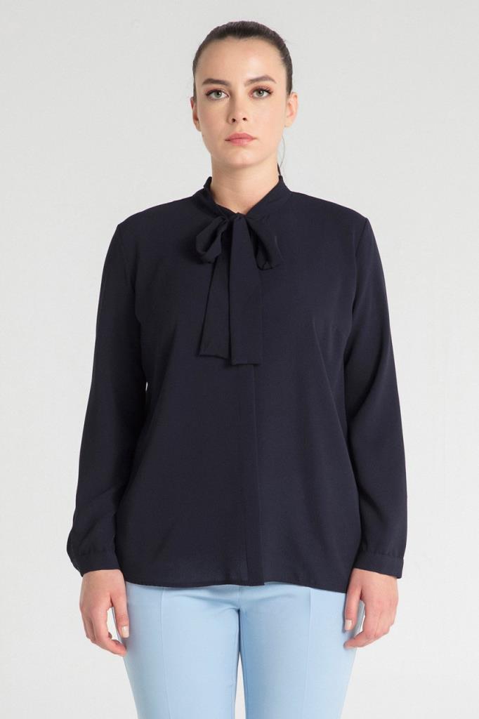 Büyük Beden Lacivert Fular Özellikli Gömlek